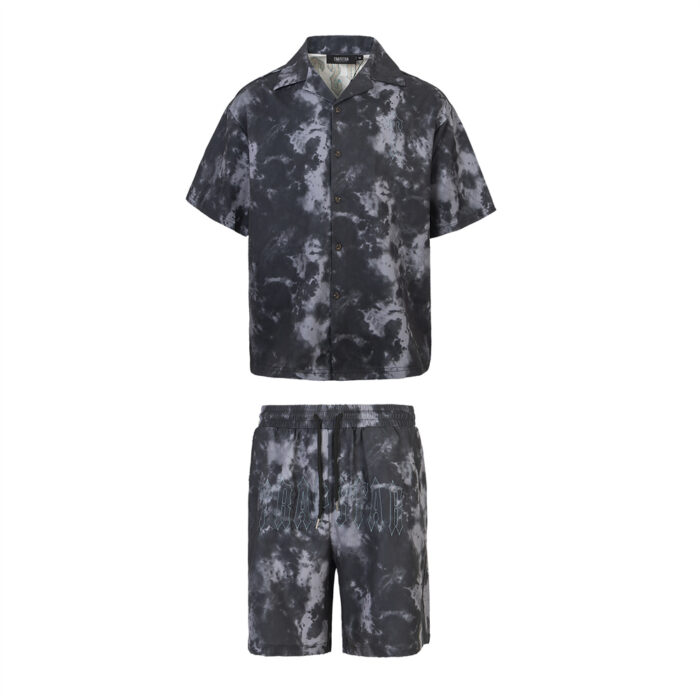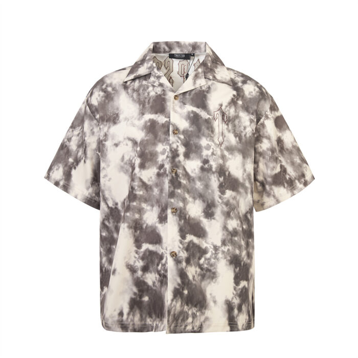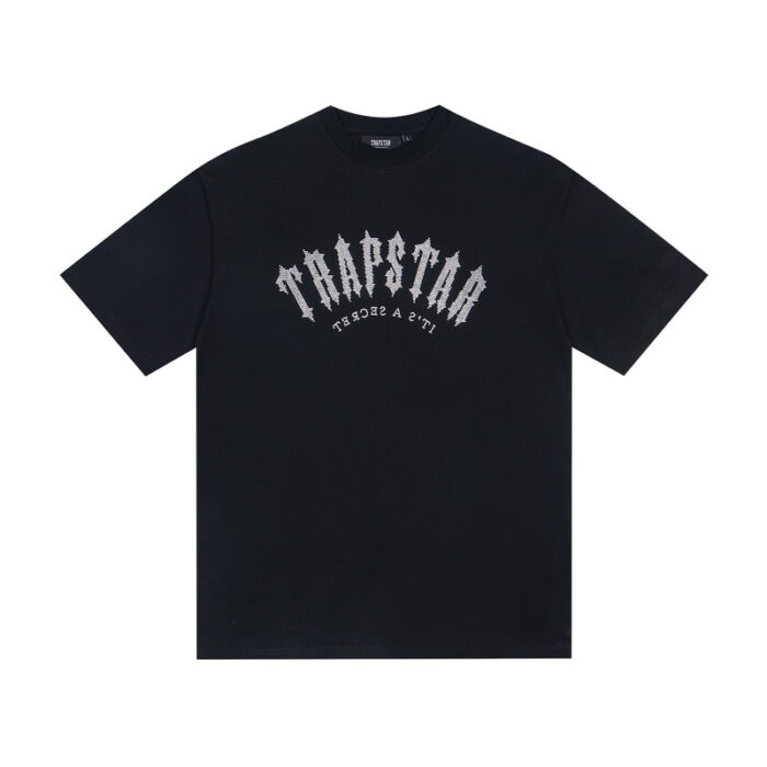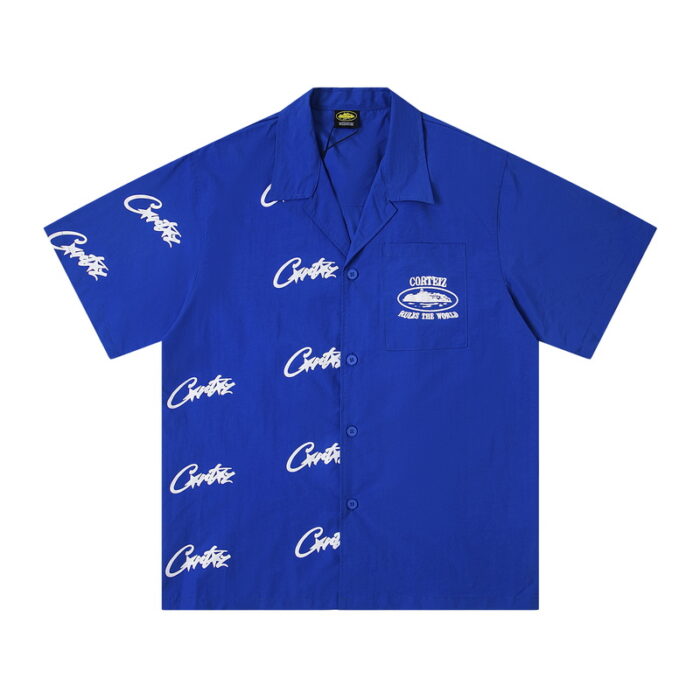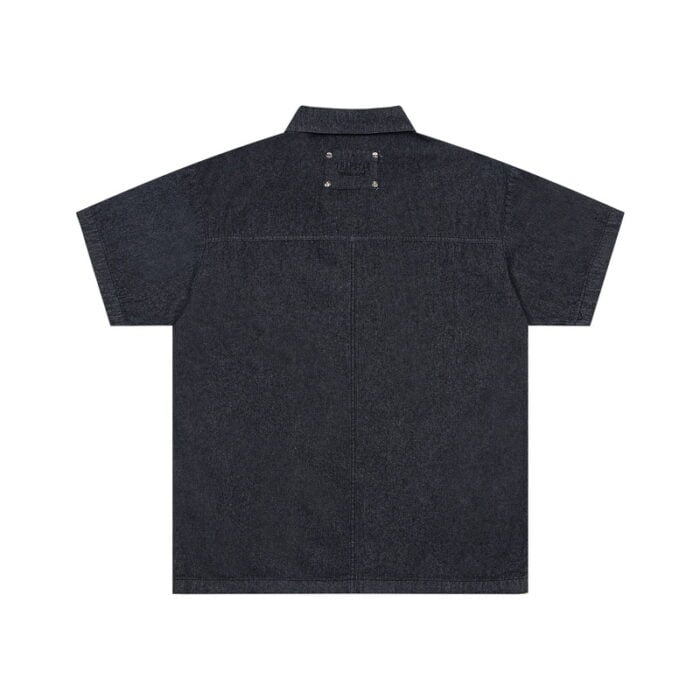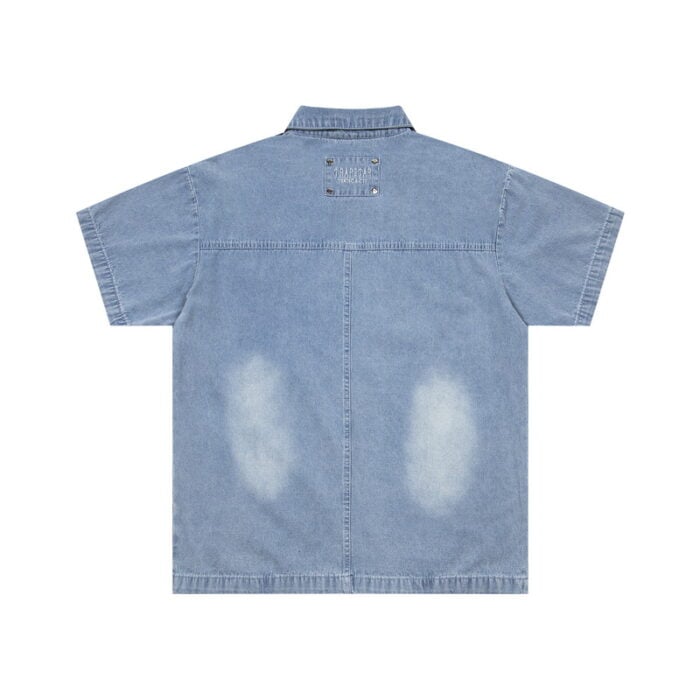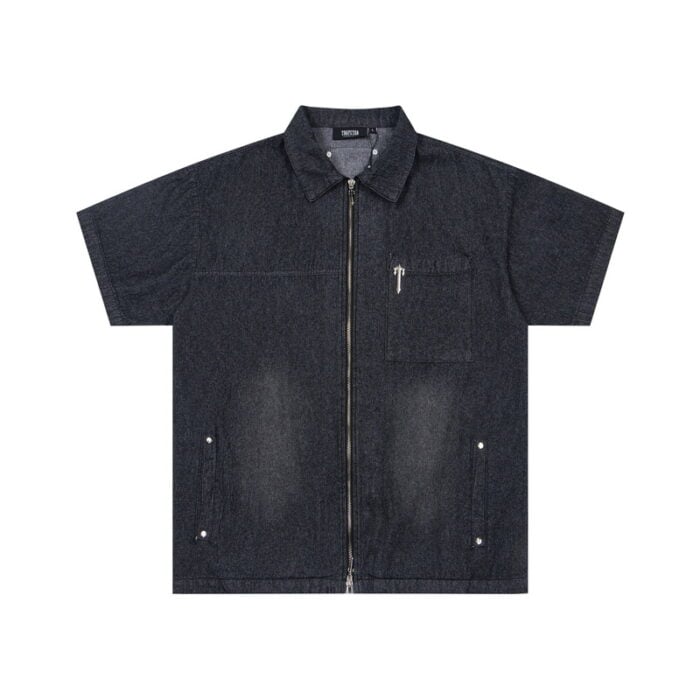 TRAPSTAR metal logo ZIP-UP DENIM short-sleeved shirt Blueトラップスター きんぞく logo ジップアップ デニム 半袖カジュアルシャツ ブルー