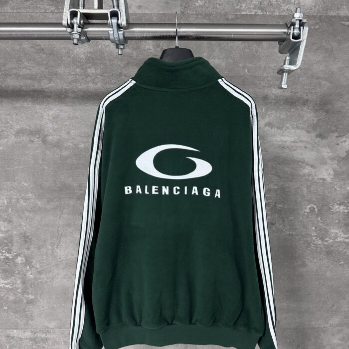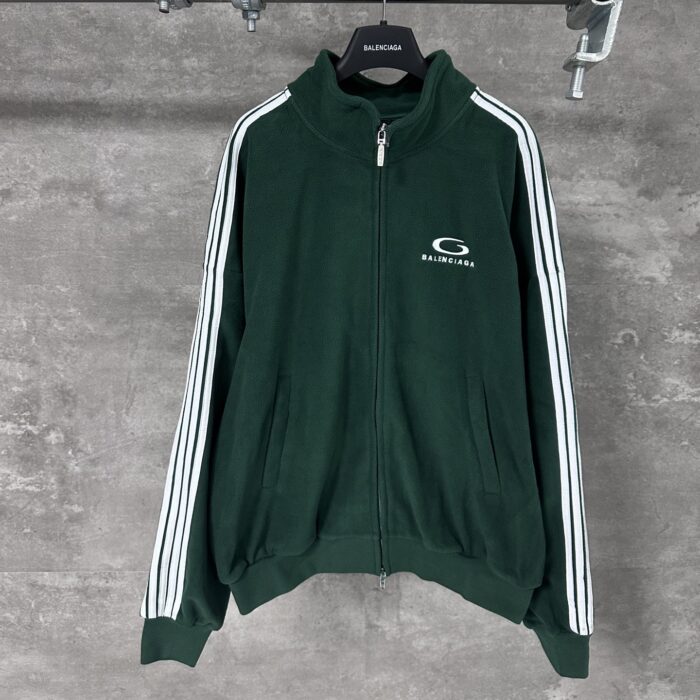 Balenciaga バレンシアガ フリース トラックジャケット ロゴ刺繍 ストライプ入り グリーン