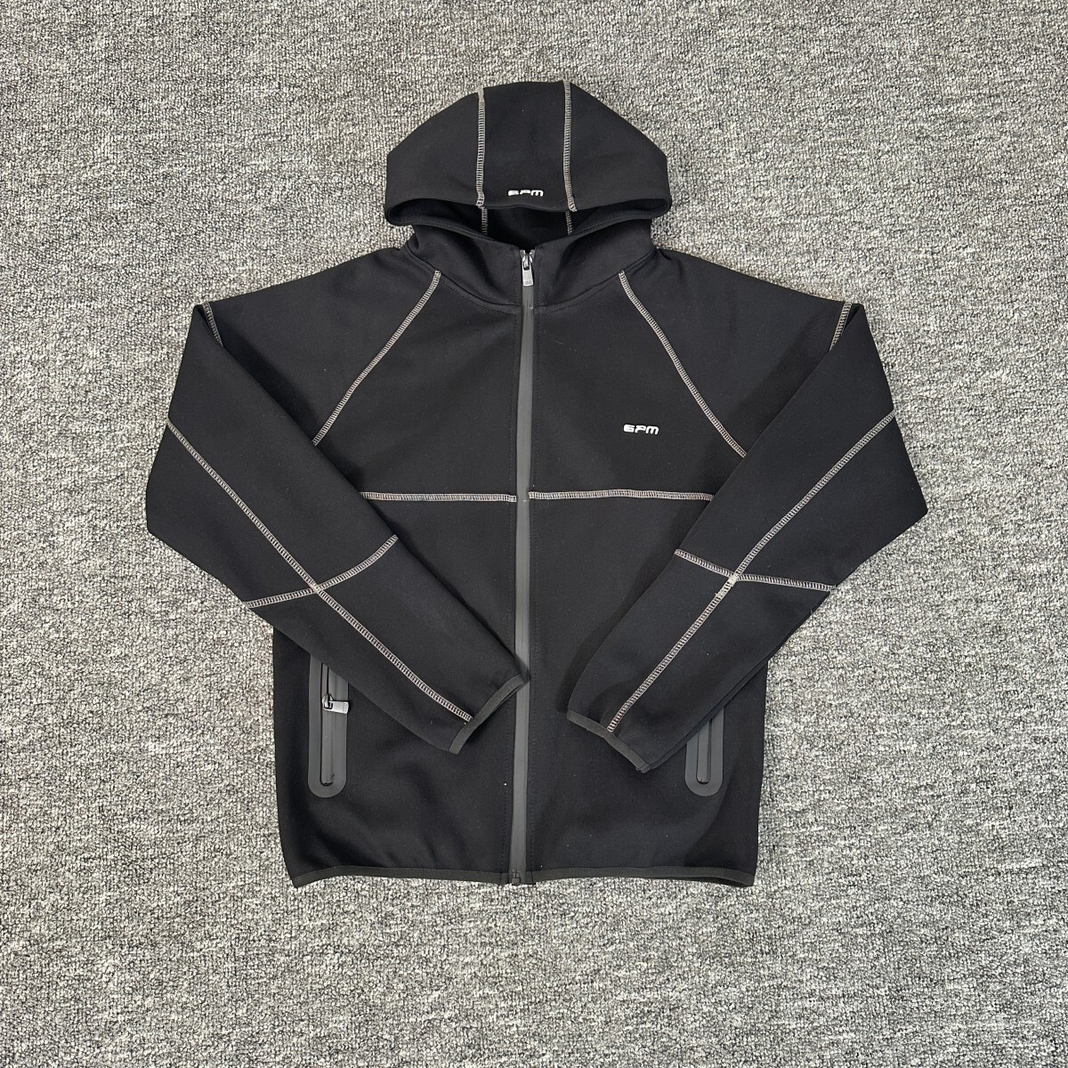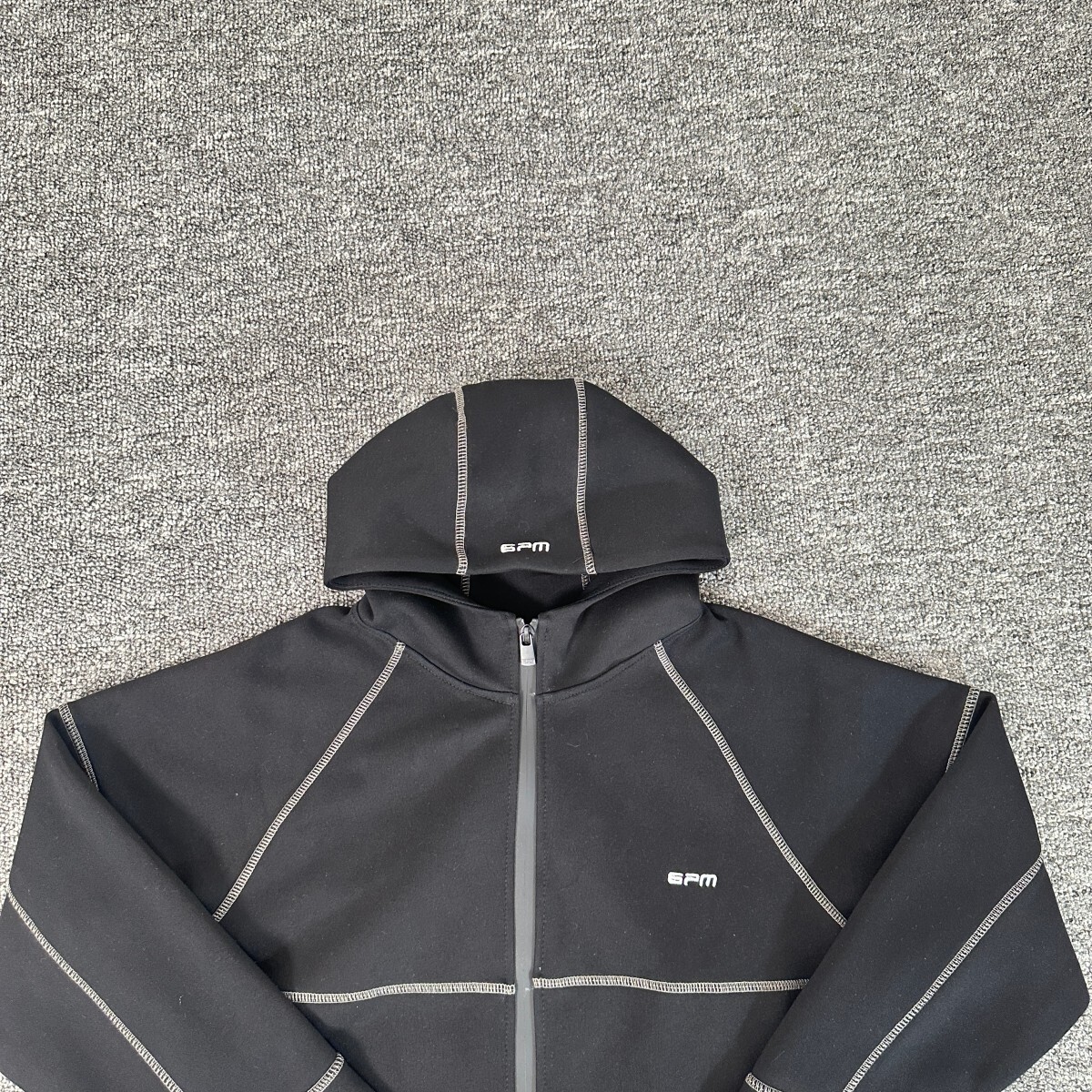 6PM Embroidery LOGO ZIP-UP HOODIE Black 刺繍 LOGO ジップアップパーカー グレー ブラック
