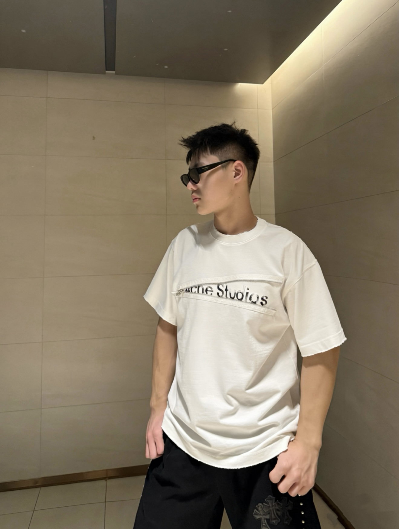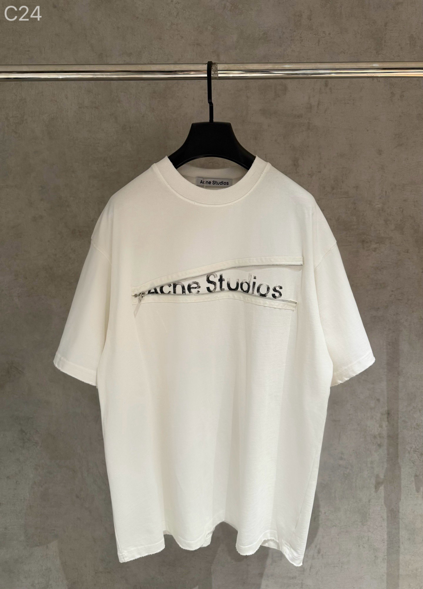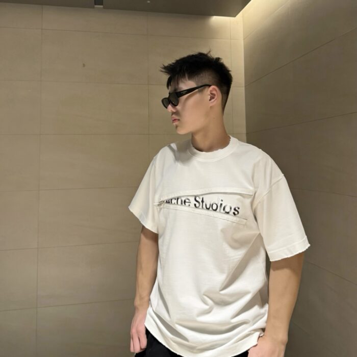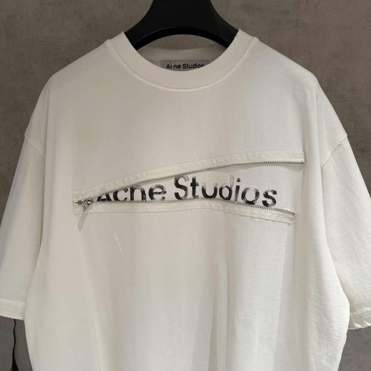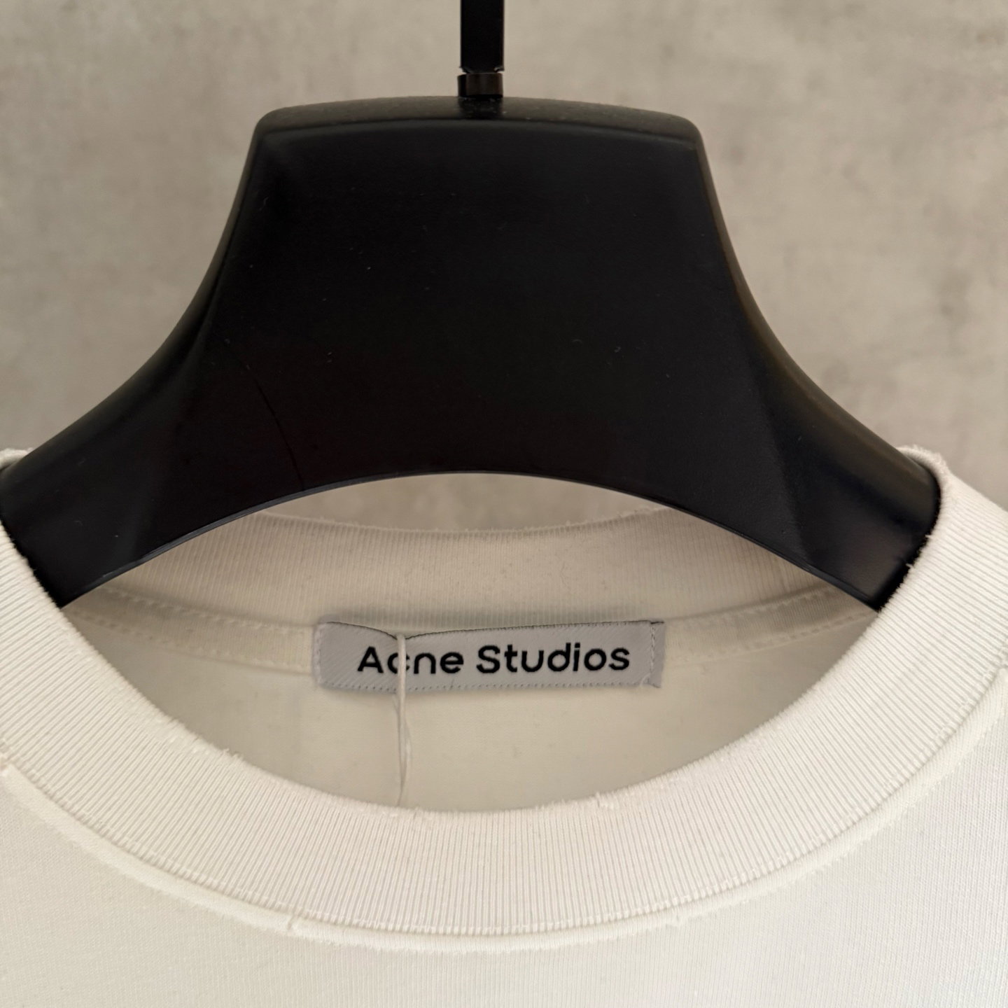 ACNE STUDIOS patch Embroidery Letter logo Round neck loose T-SHIRT White アクネストゥディオズ アップリケ 刺繍 モジ logo クルーネック ゆったり Tシャツ ホワイト
