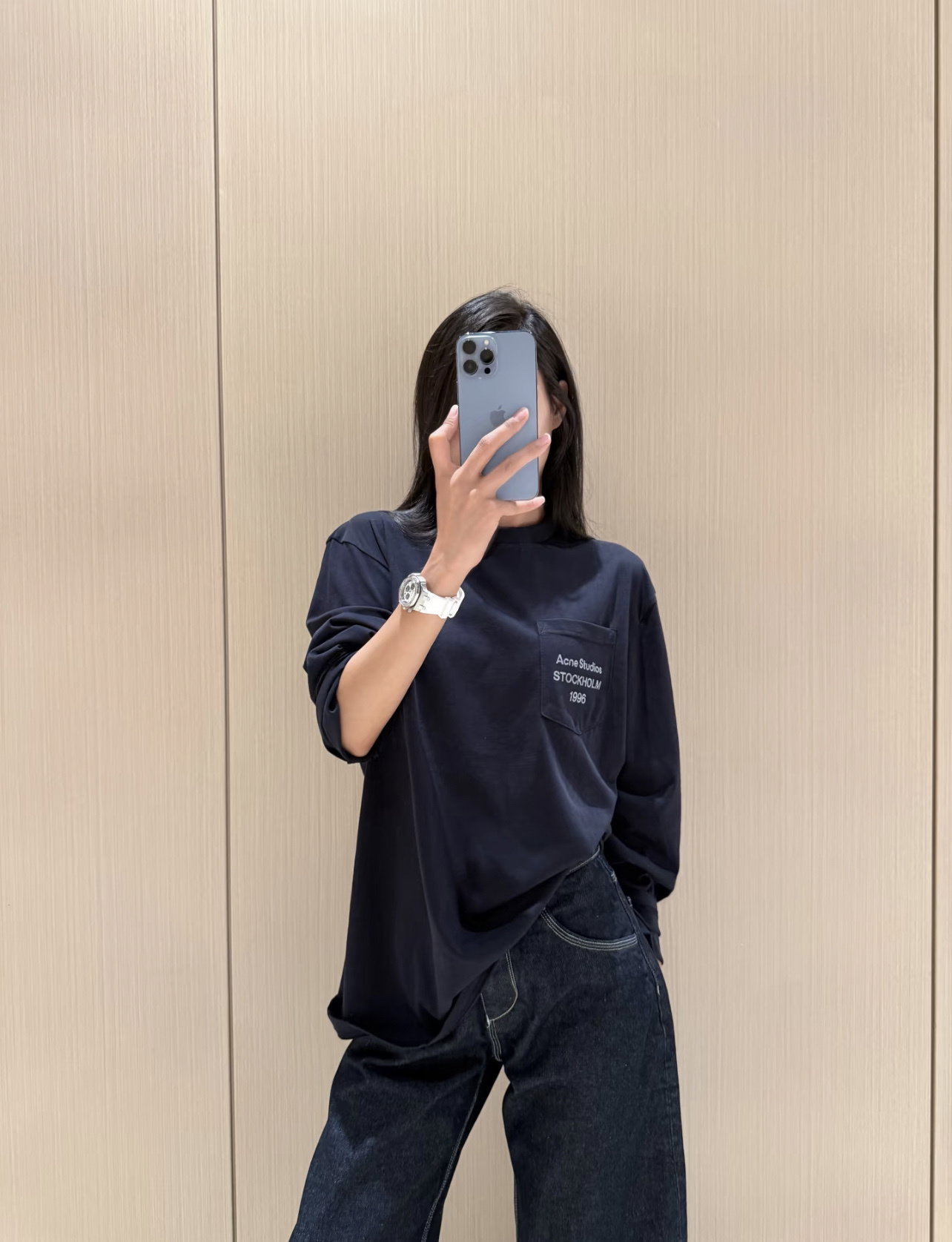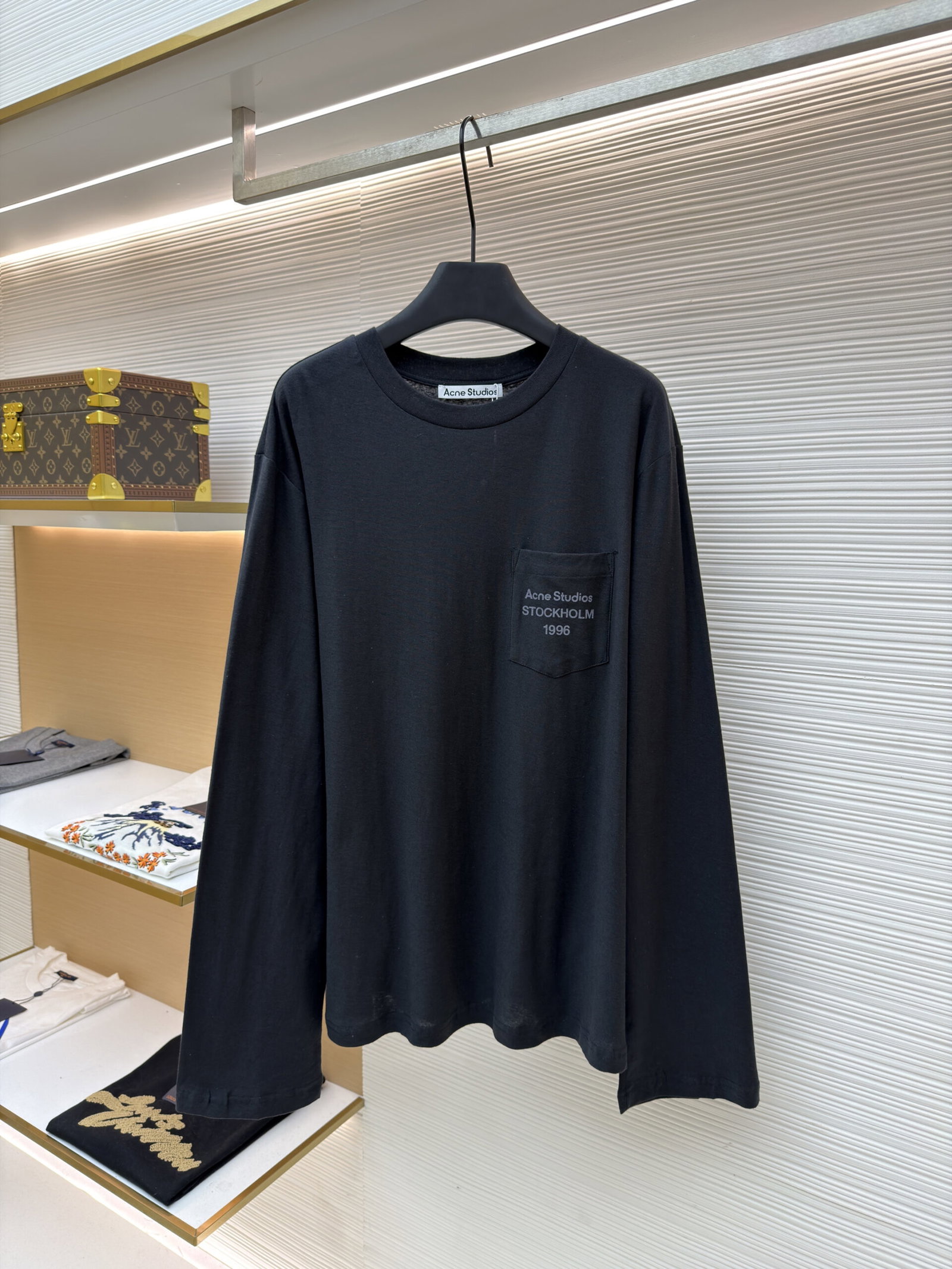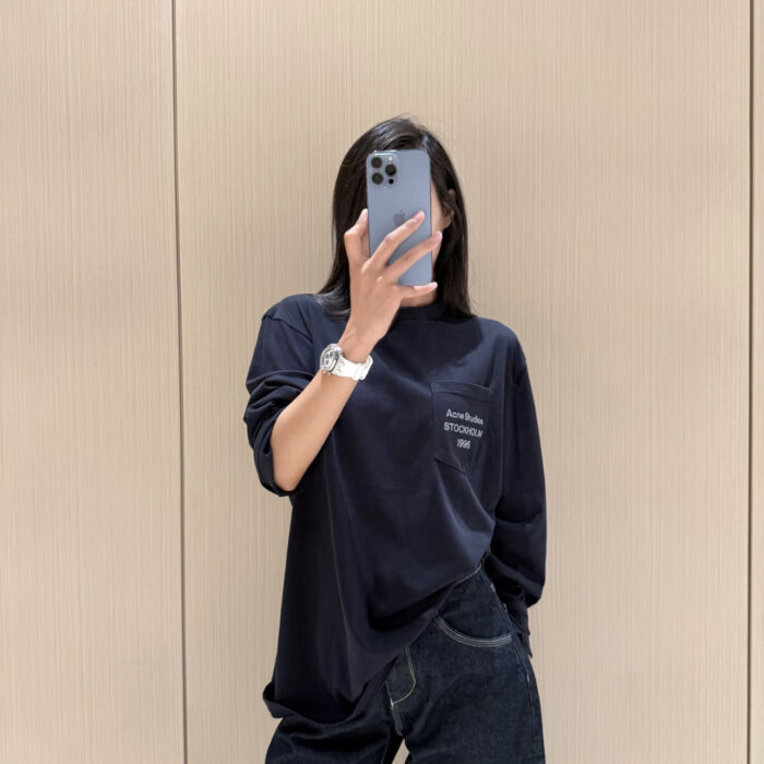 ACNE STUDIOS pocket Print Letter logo long sleeves T-SHIRT Black アクネストゥディオズ ポケット プリント モジ logo 長袖 Tシャツ ブラック
