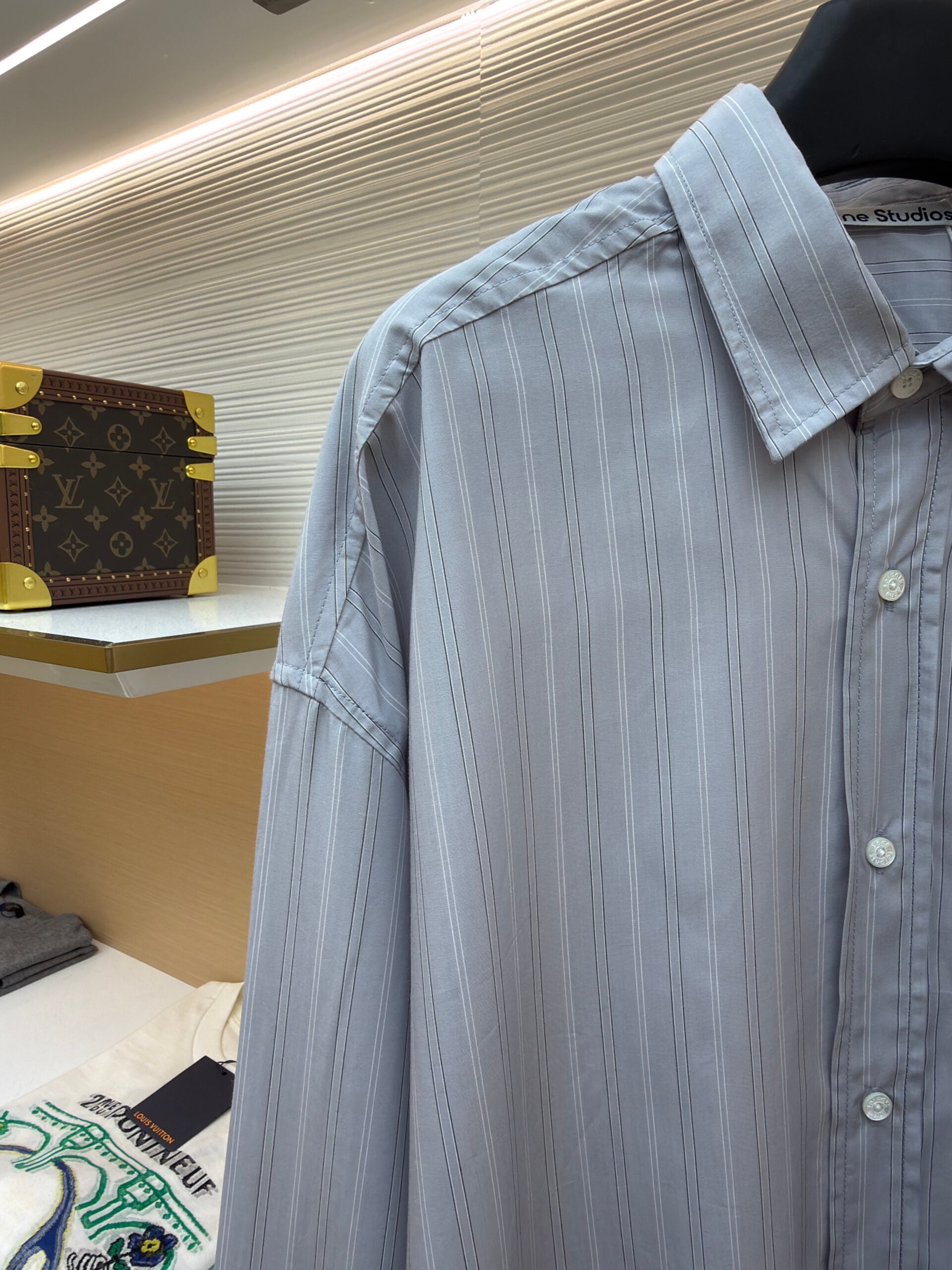 Acne Studios pocket stripe loose shirt light gray アクネストゥディオズ ポケット ストライプ ゆったり シャツ ライトグレー