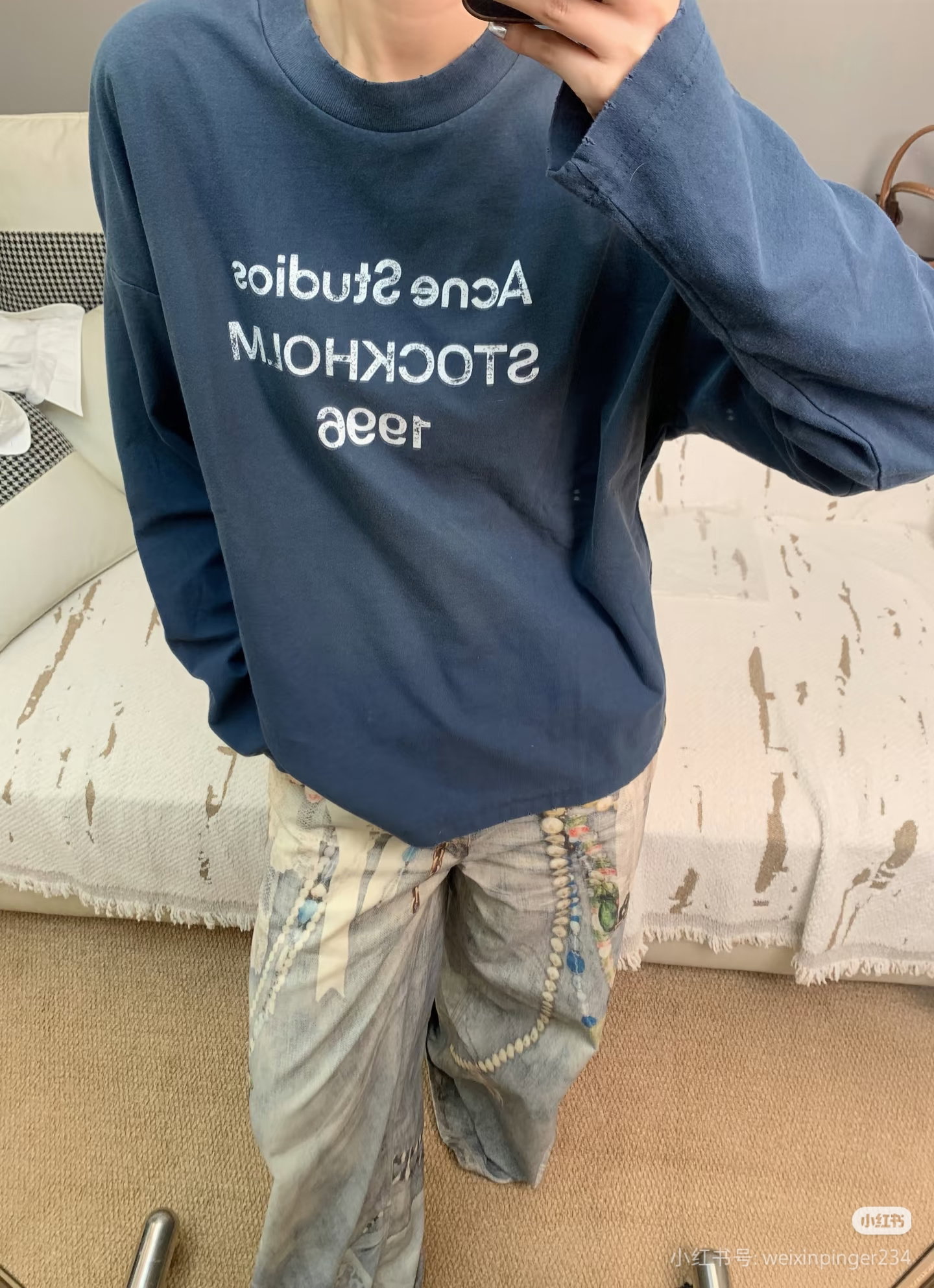 ACNE STUDIOS Print Letter logo long sleeves T-SHIRT Navy アクネストゥディオズ プリント モジ logo 長袖 Tシャツ ネイビー