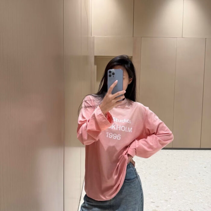 ACNE STUDIOS Print Letter logo long sleeves T-SHIRT Pink アクネストゥディオズ プリント モジ logo 長袖 Tシャツ ピンク