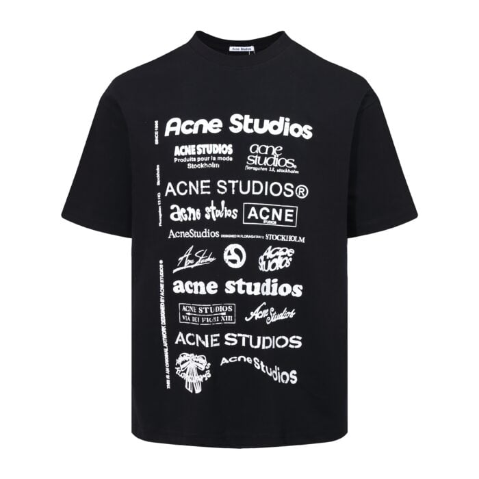 ACNE STUDIOS Print Letter logo Round neck loose T-SHIRT Black アクネストゥディオズ プリントモジ logo クルーネック ゆったり Tシャツ ブラック