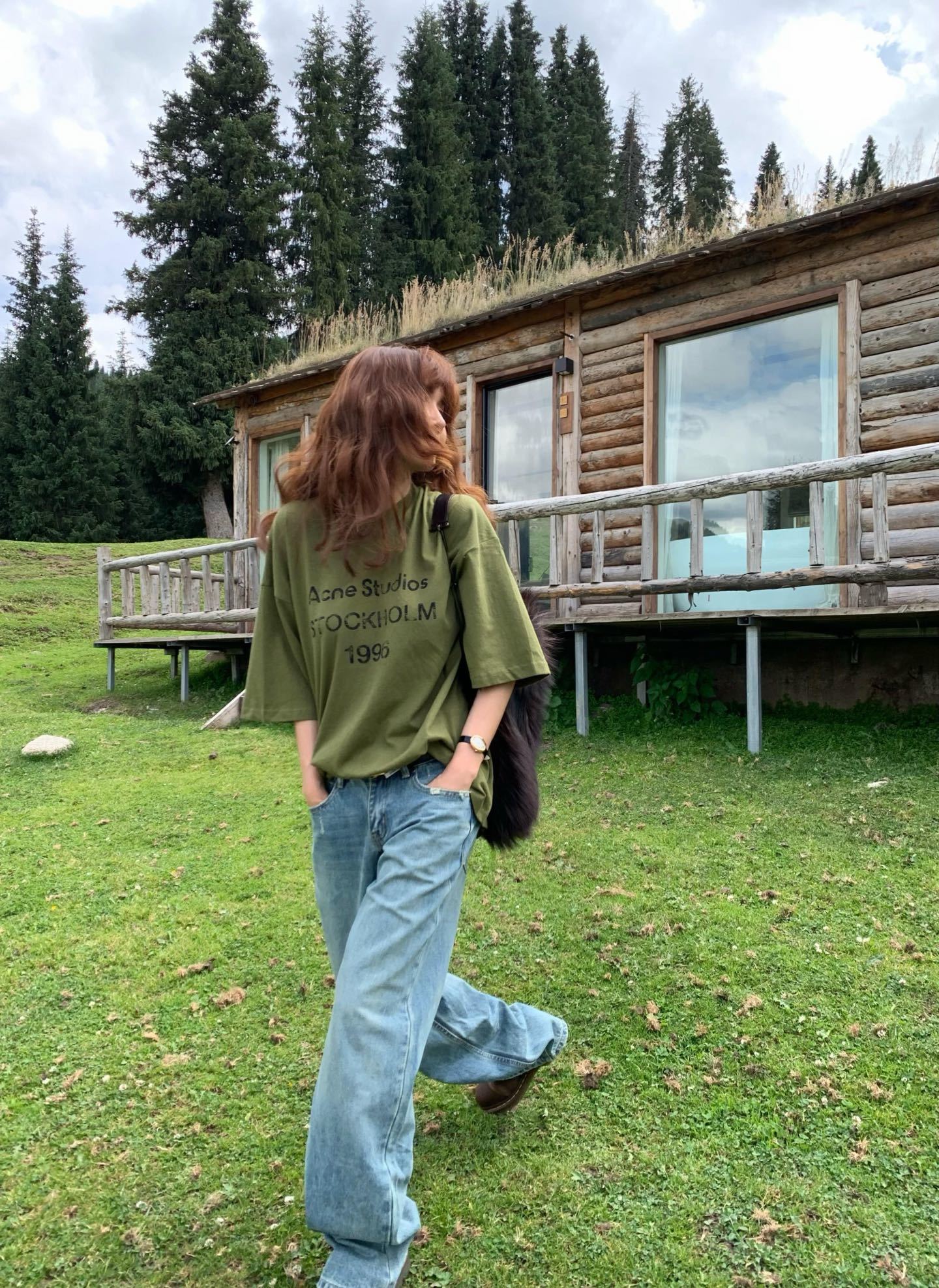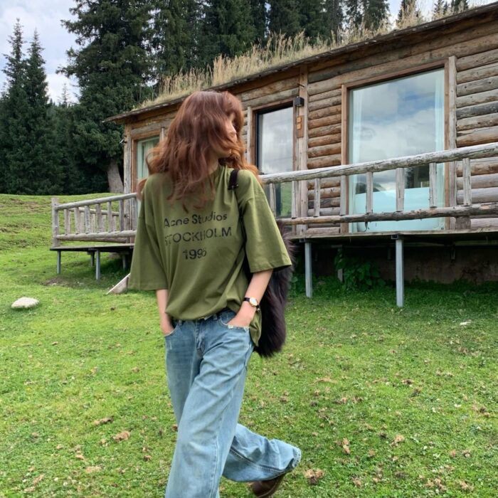 ACNE STUDIOS Print Letter logo Round neck T-SHIRT Green アクネストゥディオズ プリント モジ logo クルーネック Tシャツ グリーン
