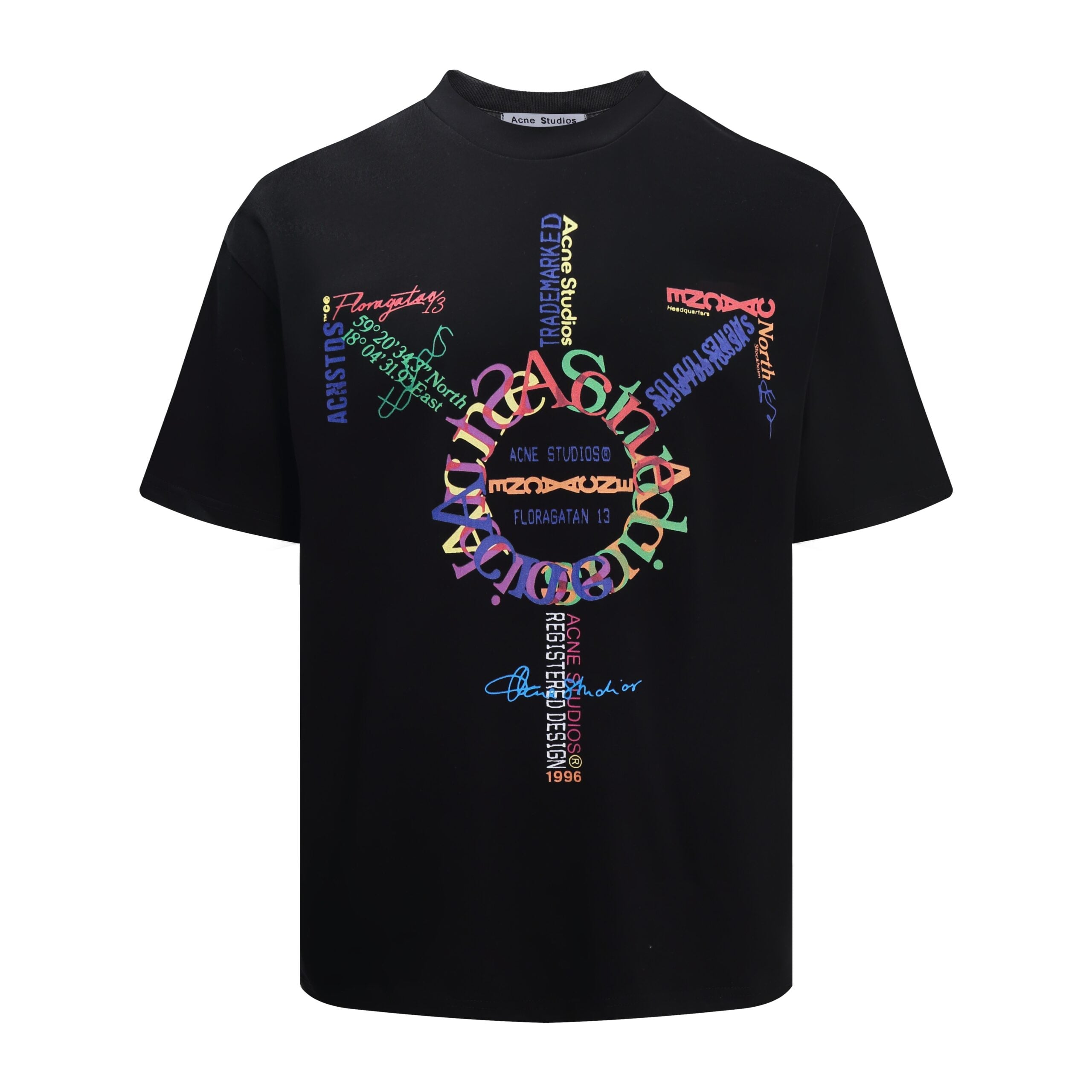 ACNE STUDIOS Print pattern Round neck loose T-SHIRT Black アクネストゥディオズ プリント パターン クルーネック ゆったり Tシャツ ブラック