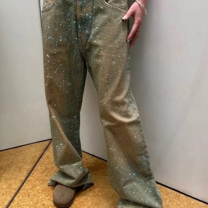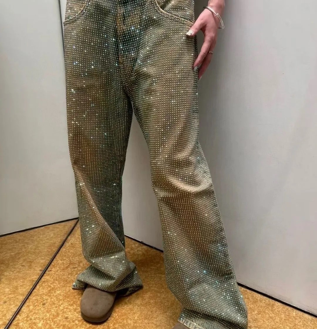 ACNE STUDIOS rhinestone casual DENIM JEANS Green アクネストゥディオズ ラインストーン カジュアル デニムパンツ グリーン