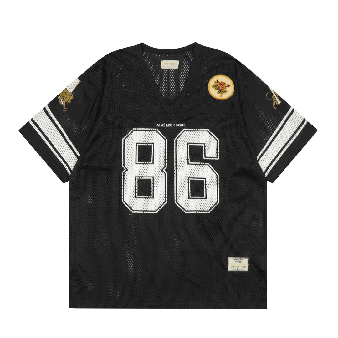 Aime Leon Dore Print number pattern loose FOOTBALL JERSEY mesh surface T-shirt Black ALD プリント ナンバー パターン ゆったり フットボールジャージ メッシュ Tシャツ ブラック