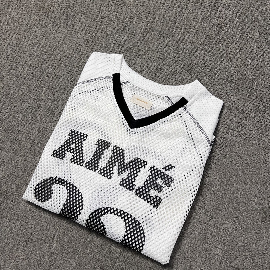 Aime Leon Dore Print number pattern loose FOOTBALL JERSEY mesh surface T-shirt White ALD プリント ナンバー パターン ゆったり フットボールジャージ メッシュ Tシャツ ホワイト
