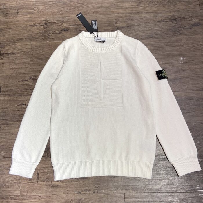 STONE ISLAND emblem knit Sweater White ストーン アイランド バッジ ニットセーター ホワイト