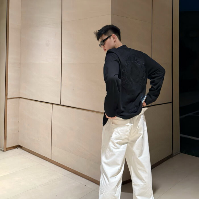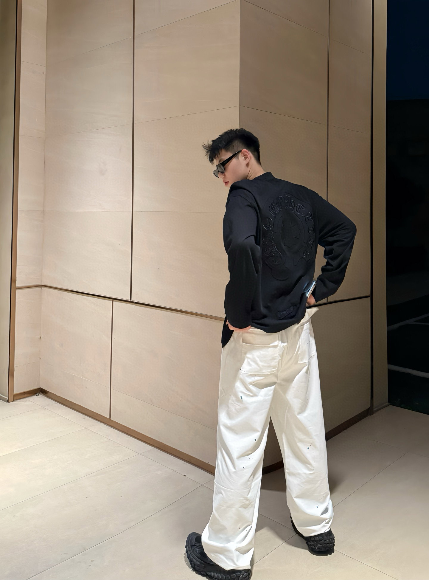 Chrome Hearts クロムハーツ あまいろ クロス レザー 刺繍 亜麻色 レトロ カジュアルパンツ