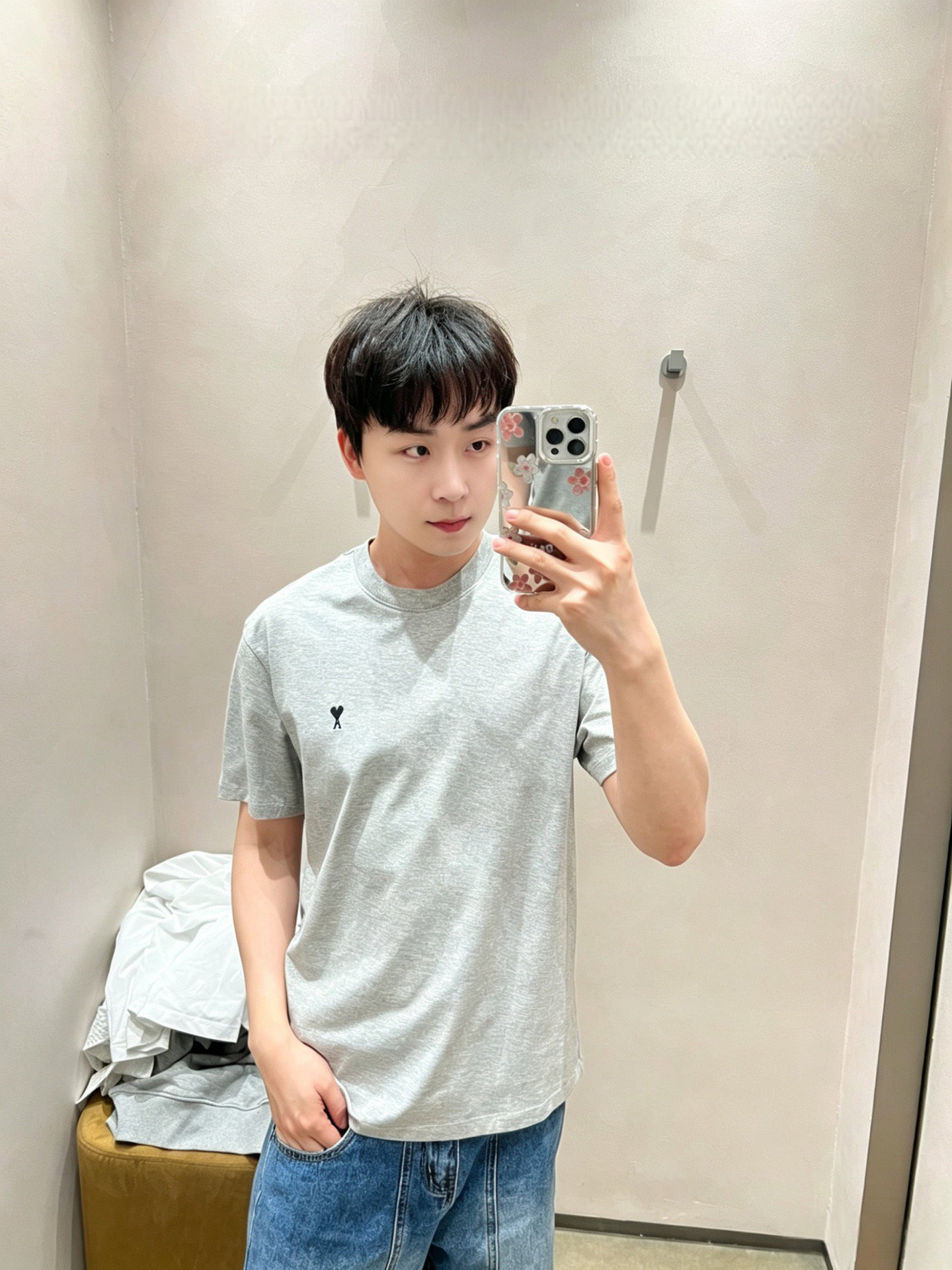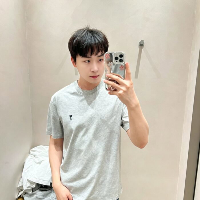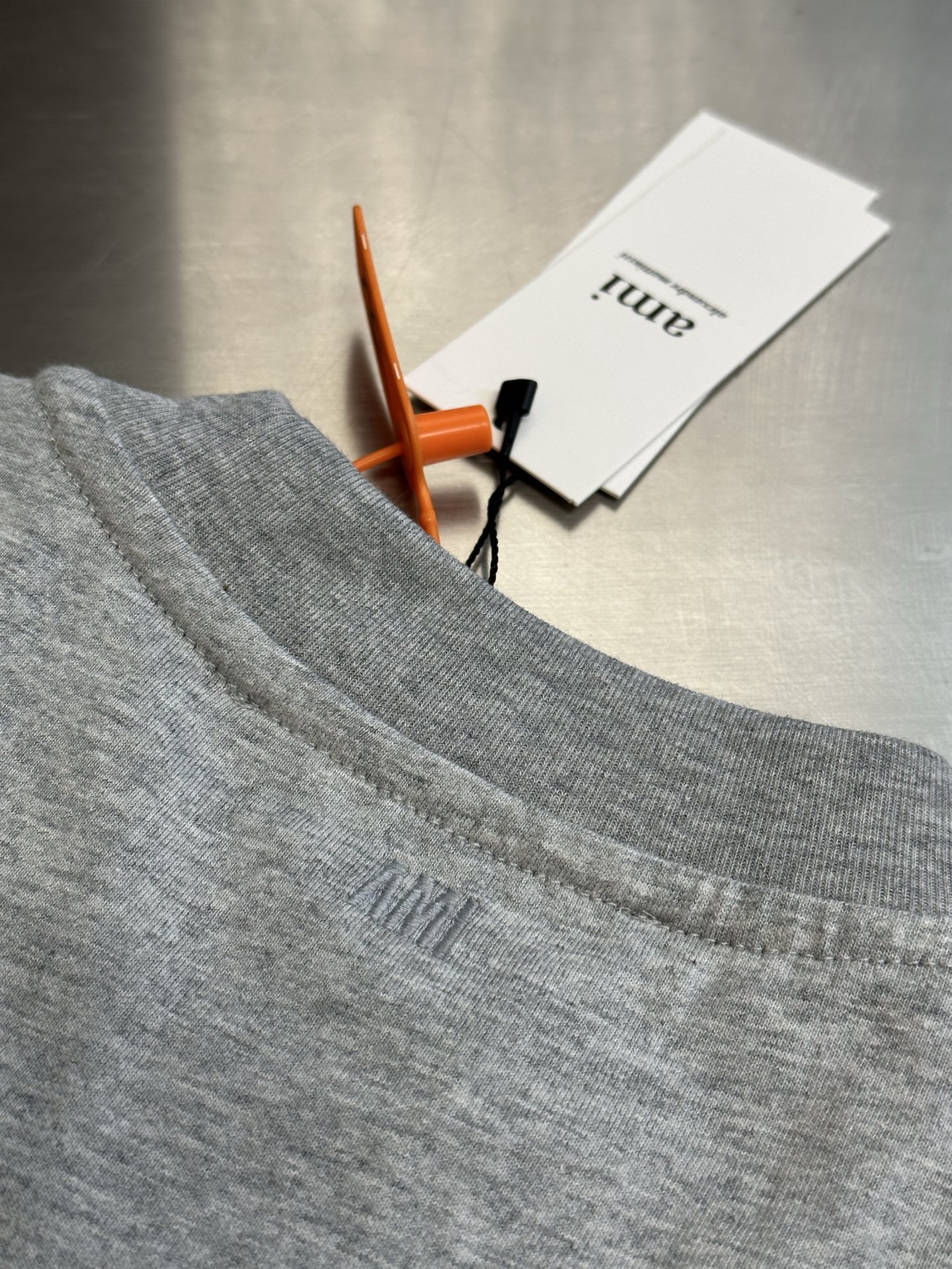 AMI PARIS Embroidery logo Round neck loose T-shirt Gray アミパリス 刺繍 logo クルーネック ゆったり Tシャツ グレー