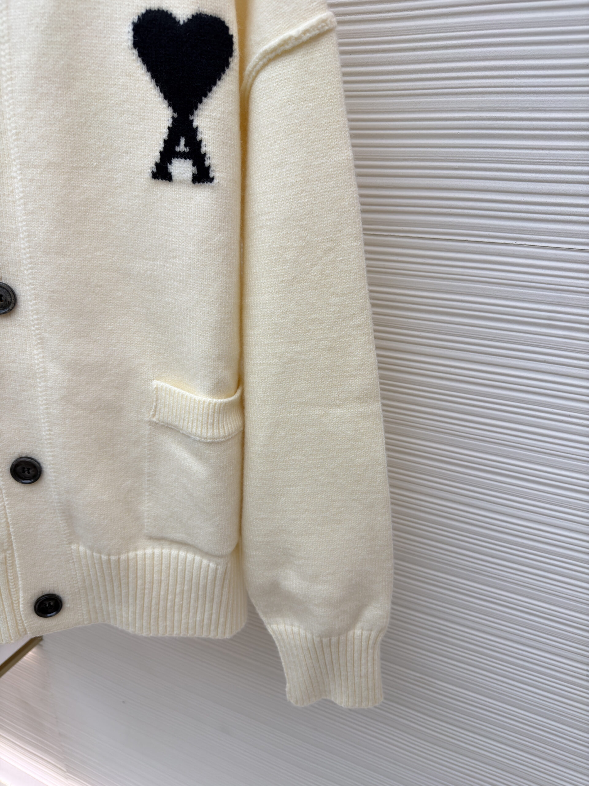 AMI PARIS Embroidery pattern Knit Sweater Cardigan Beige アミパリス 刺繍 パターン ニットセーター カーディガン ベージュ