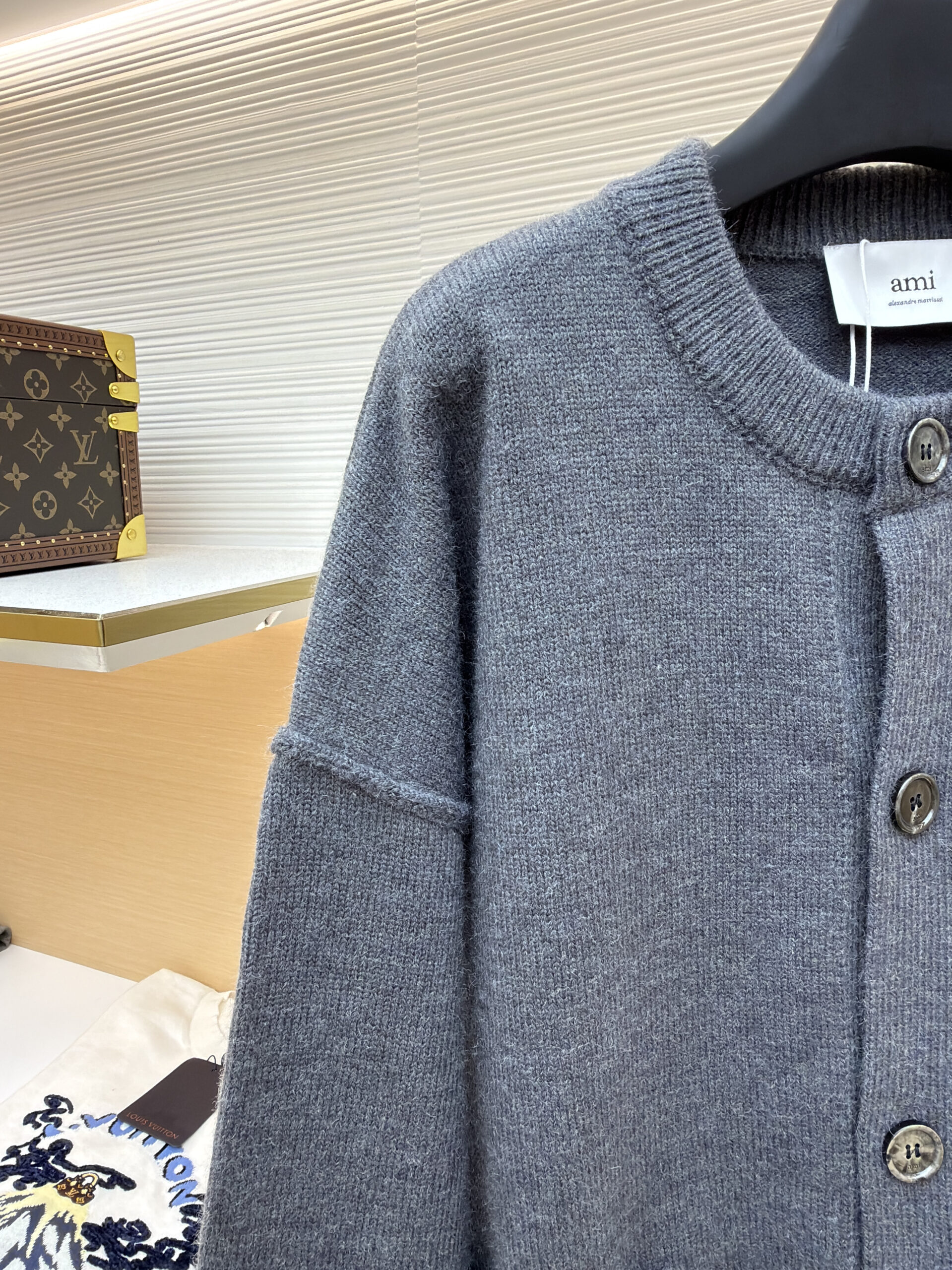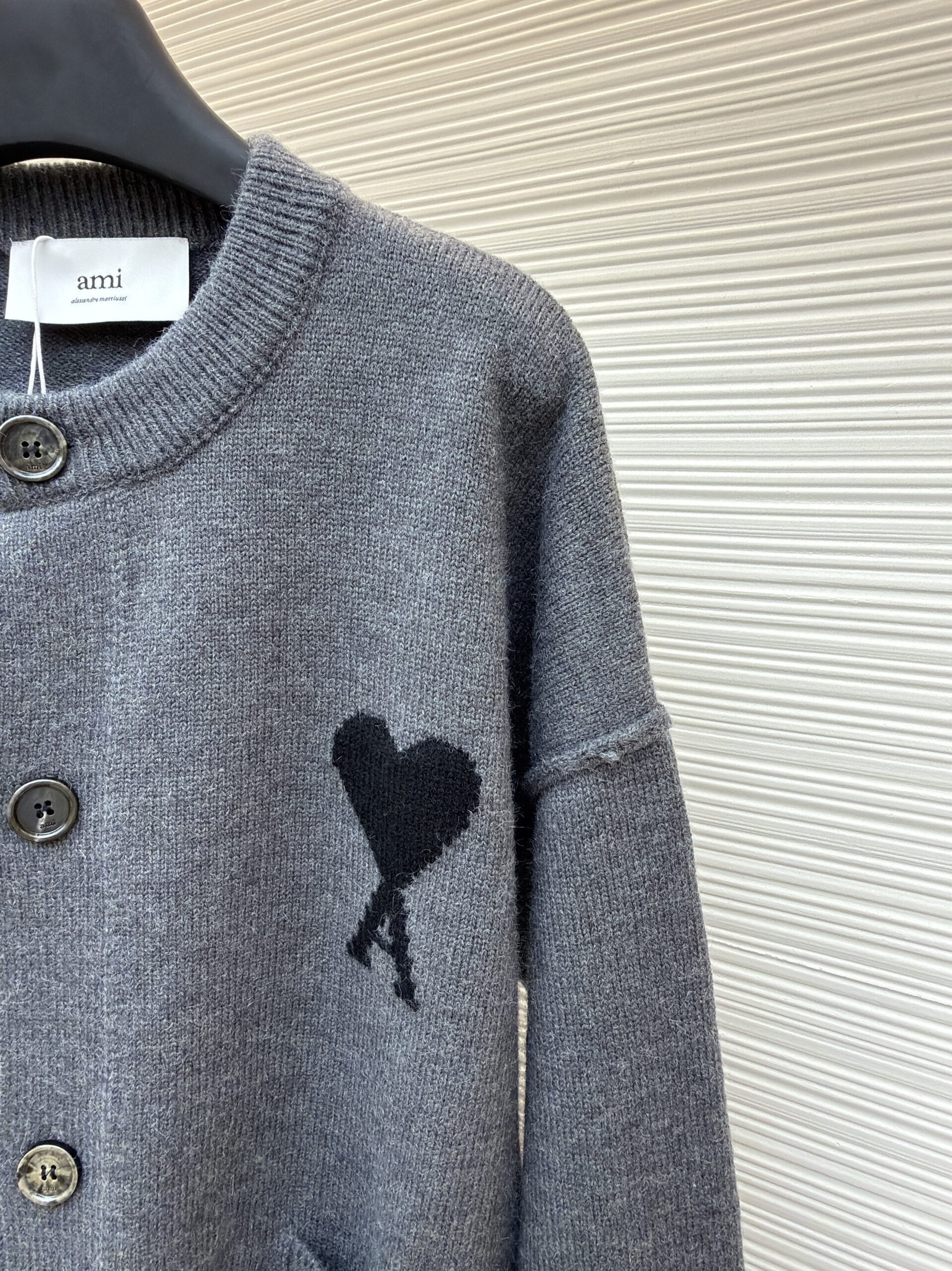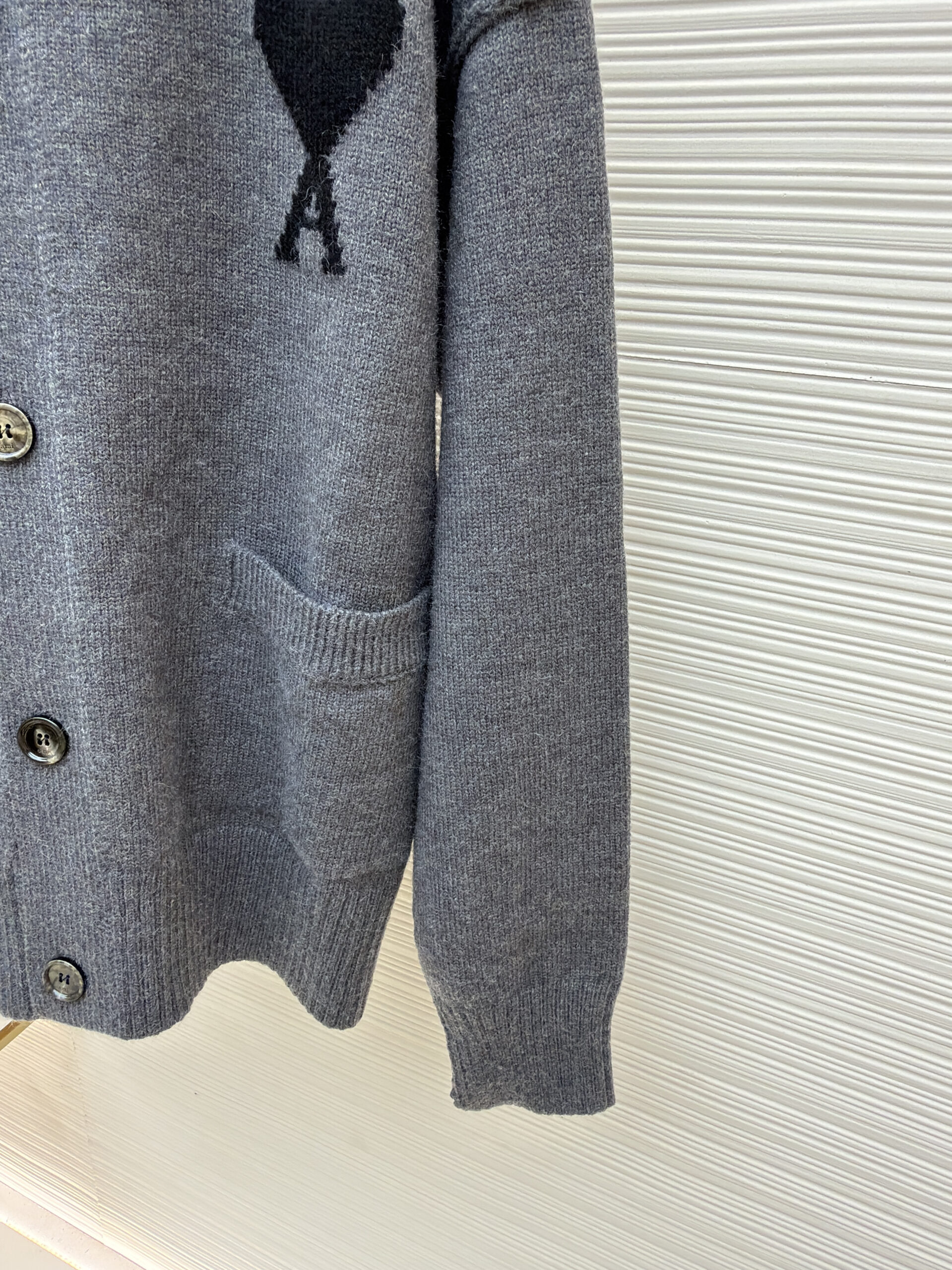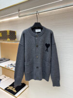AMI PARIS Embroidery pattern Knit Sweater Cardigan Gray アミパリス 刺繍 パターン ニットセーター カーディガン グレー