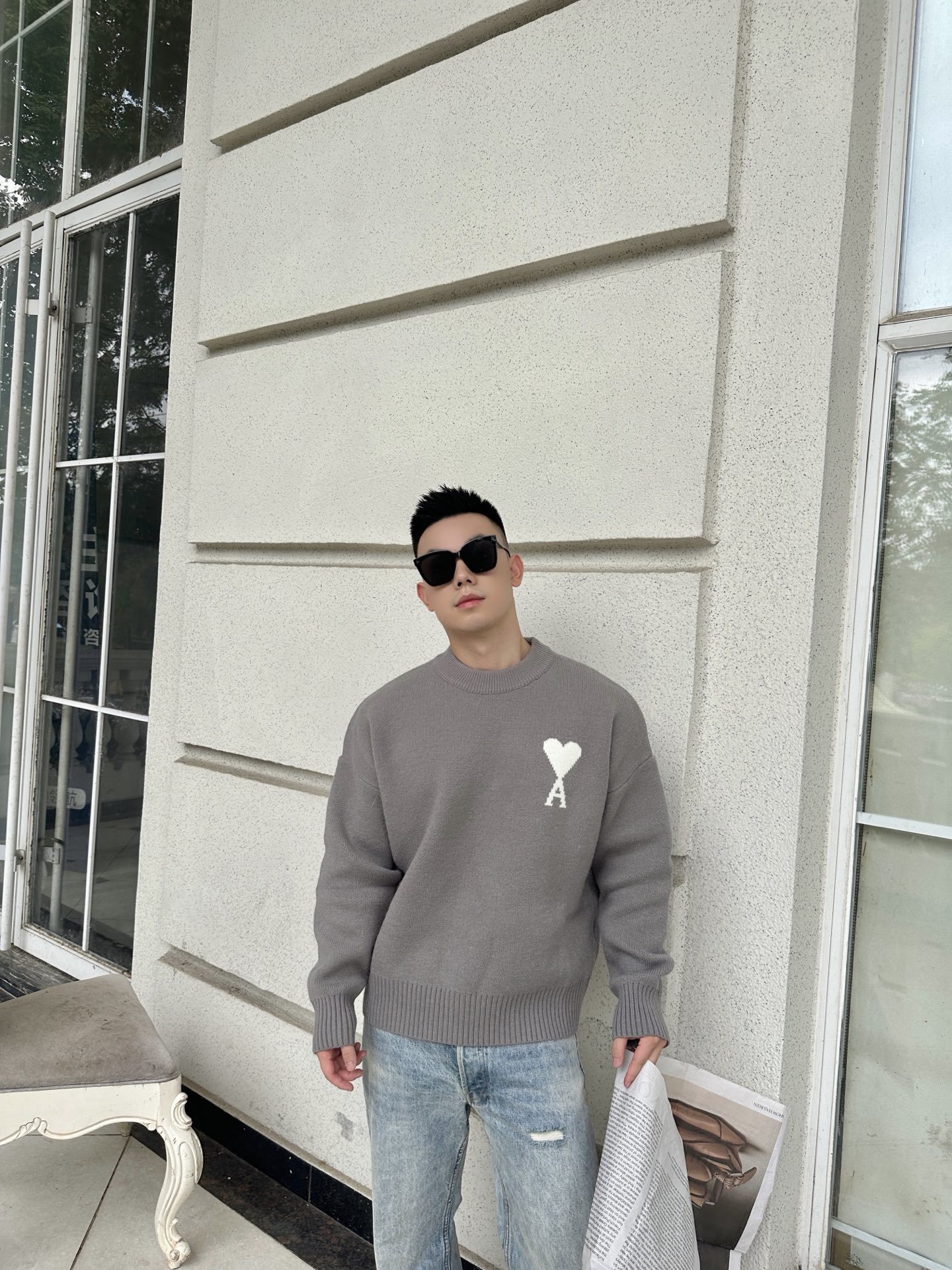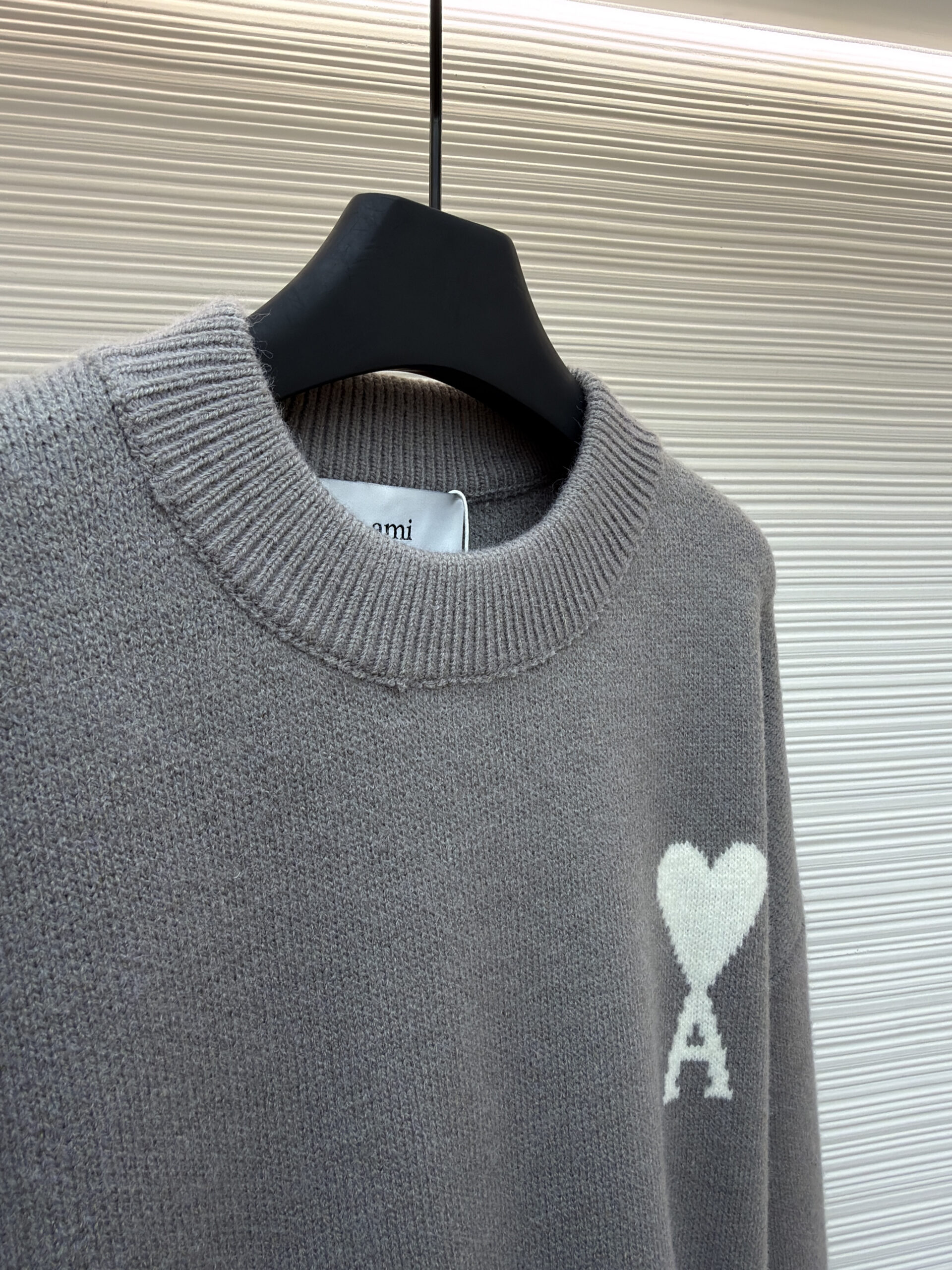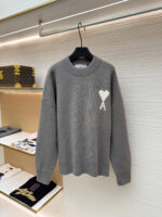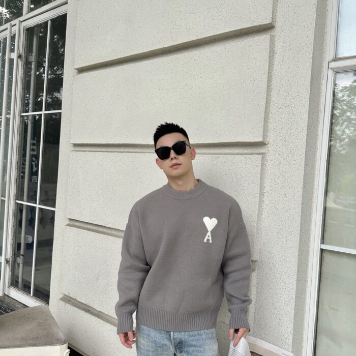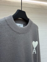 AMI PARIS Embroidery pattern Round neck Sweater Gray アミパリス ハート刺繍 クルーネック ニットセーター グレー