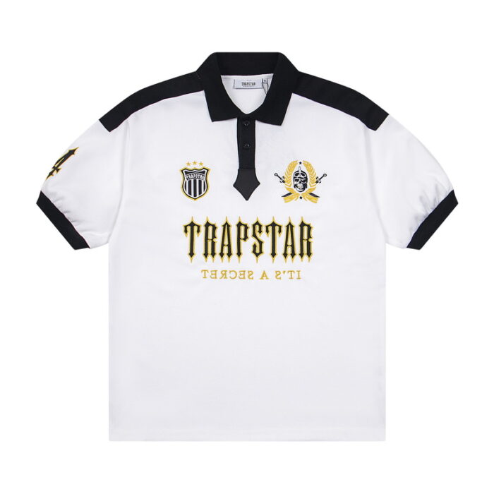 TRAPSTAR Embroidery Letter logo polo-neck loose T-shirt White トラップスター 刺繍 モジ logo polo-ネック ゆったり Tシャツ ホワイト