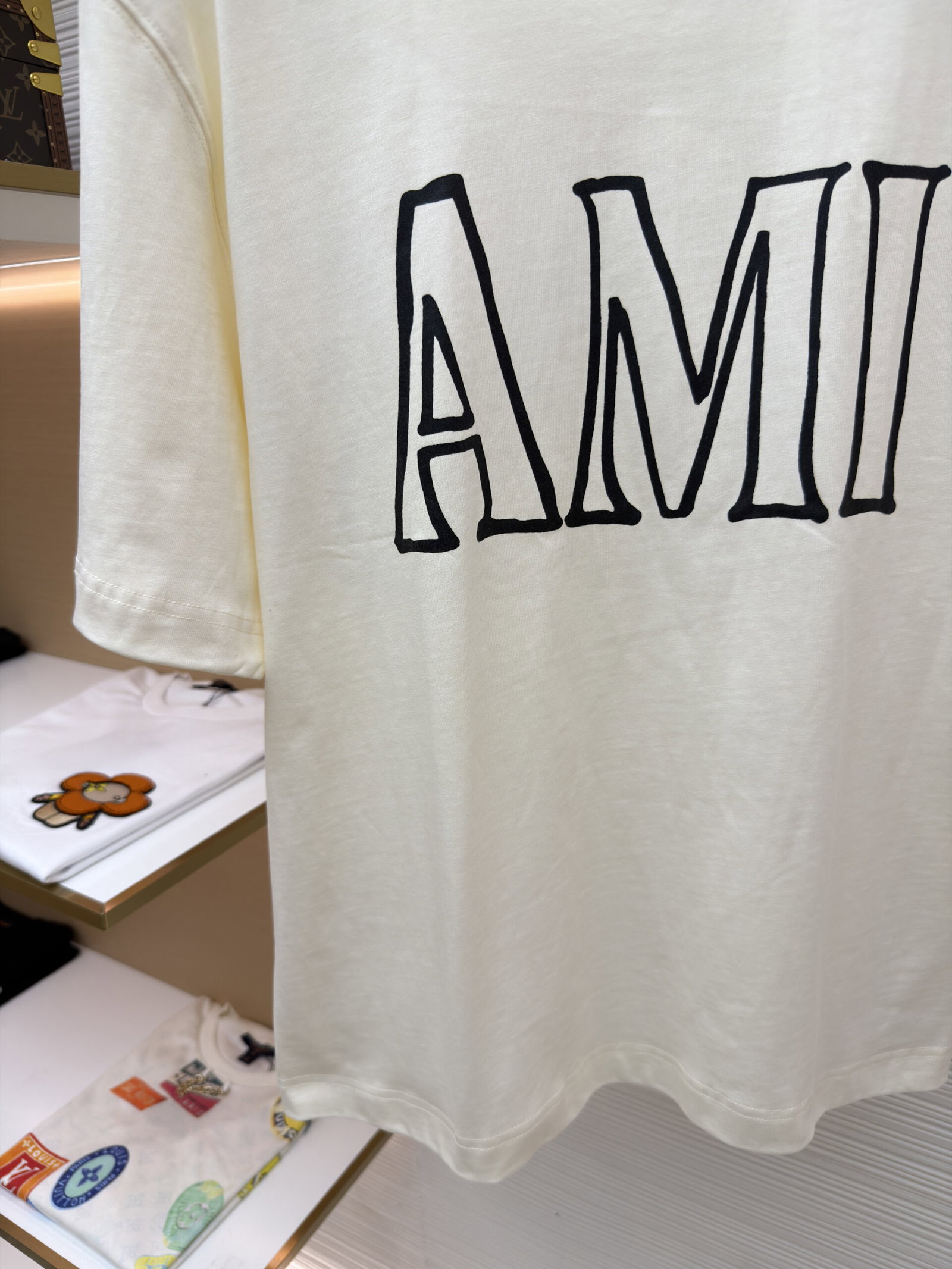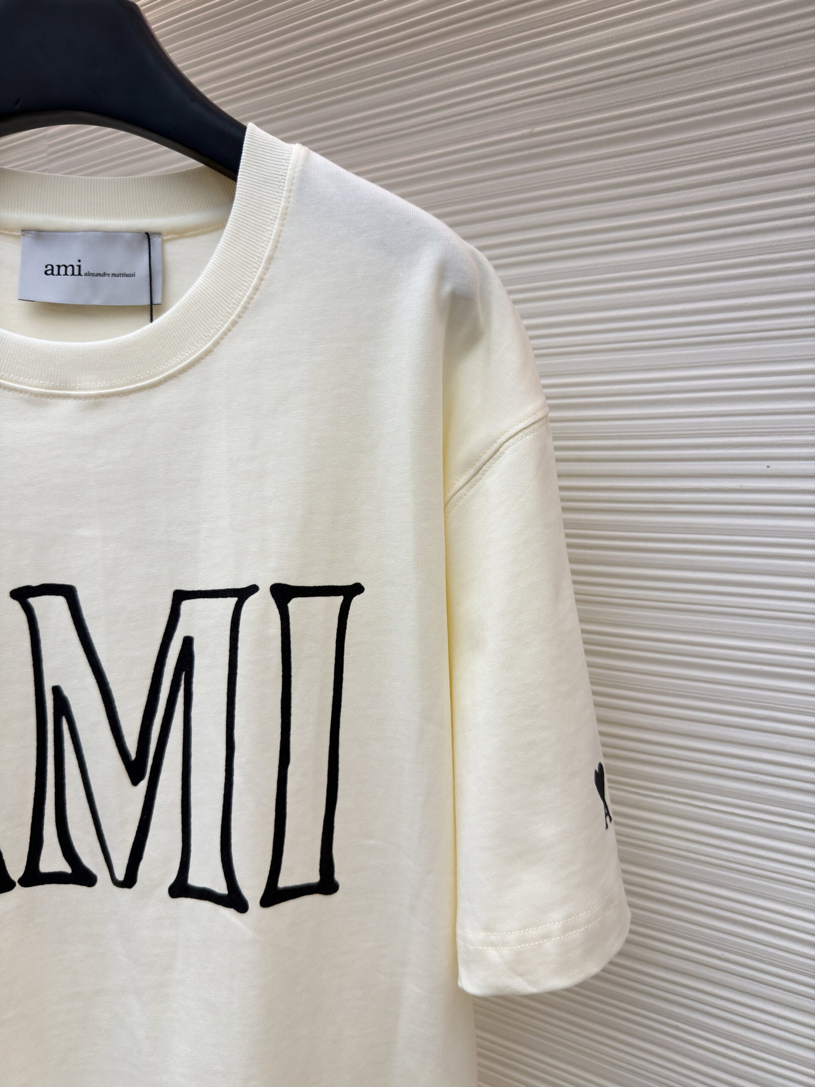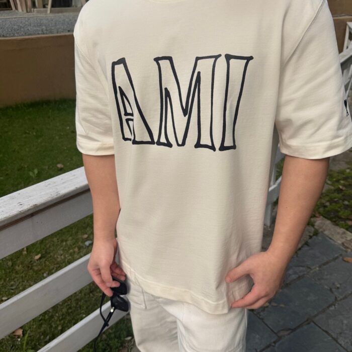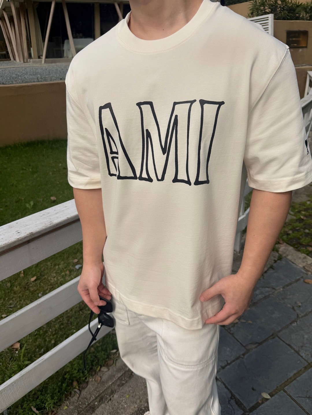 AMI PARIS Print Letter logo POLO Neck loose T-shirt アミパリス プリント モジ logo POLO ネック ゆったり Tシャツ