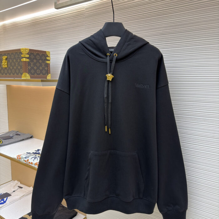 Versace Embroidery LOGO loose Hoodie Black ヴェルサーチェ 刺繍 LOGO ゆったり パーカー ブラック