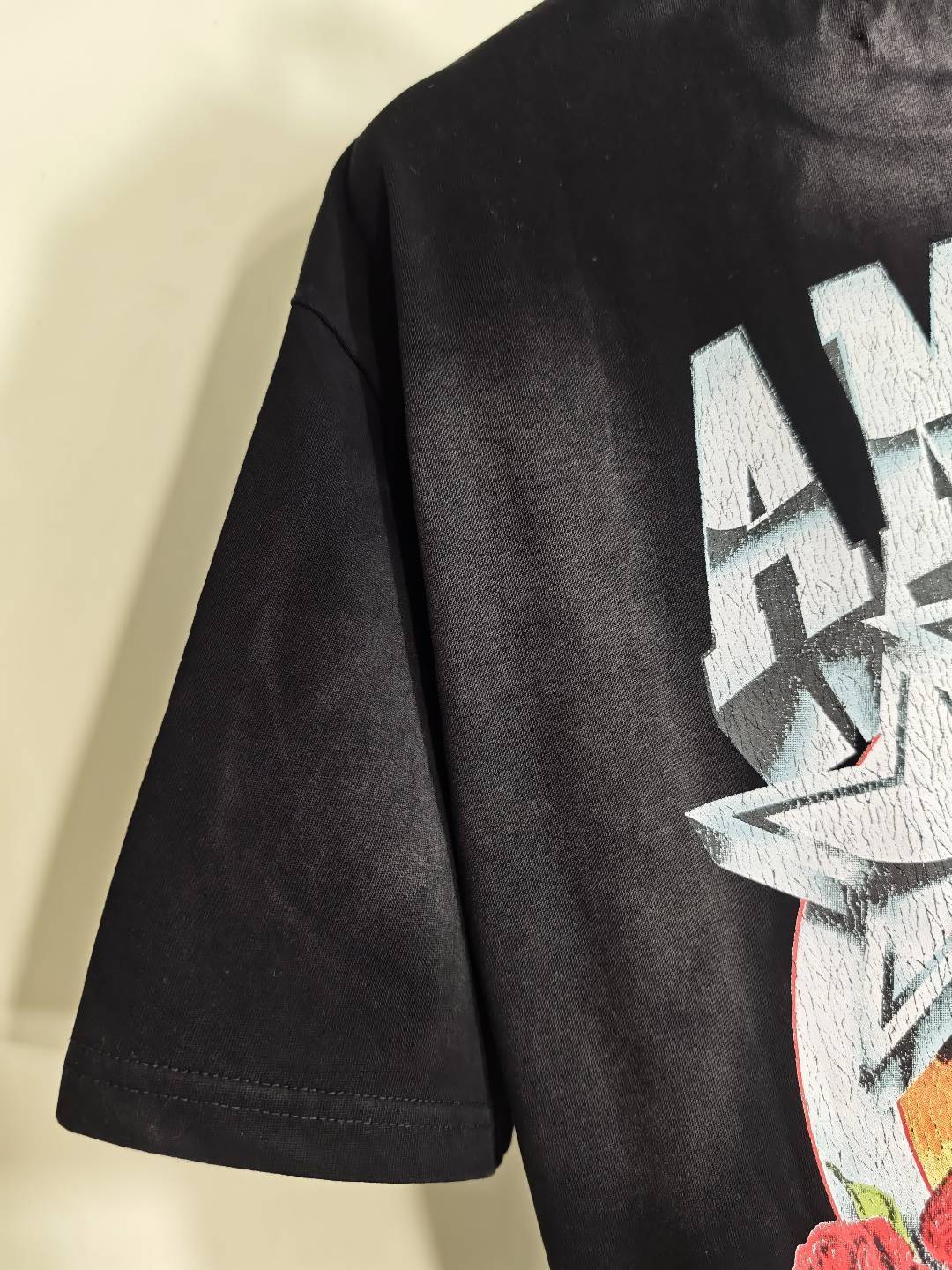AMIRI loose Print pattern T-shirt washed black アミリ ゆったり プリント パターン Tシャツ 黒