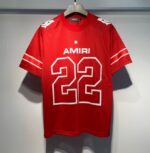 AMIRI Print number Letter pattern loose mesh surface T-shirt Red アミリ プリント ナンバー モジ パターン ゆったり メッシュ Tシャツ レッド