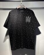 AMIRI rhinestone Letter pattern logo loose Round neck T-shirt Black アミリ ラインストーン モジ パターン logo ゆったり クルーネック Tシャツ ブラック