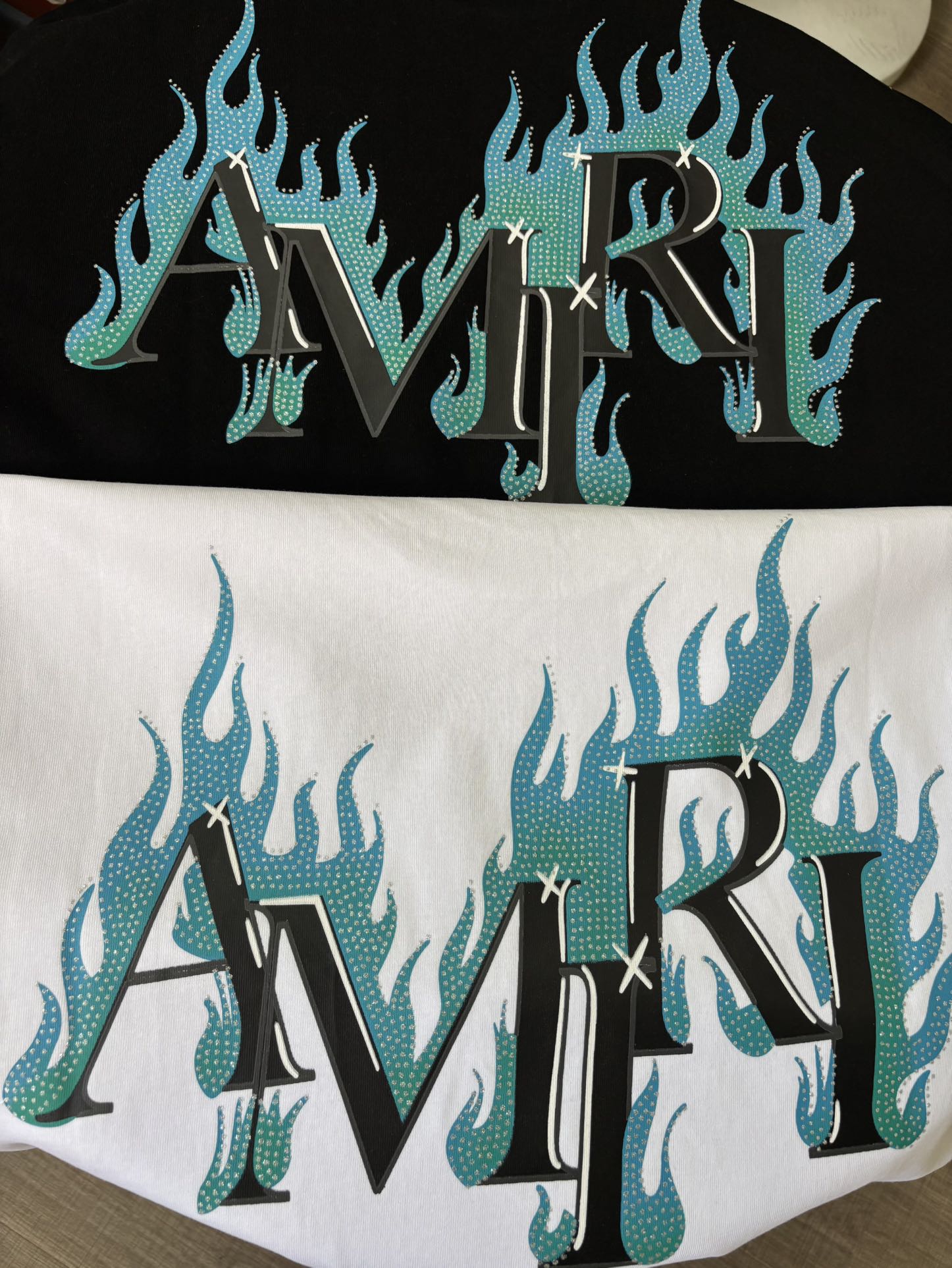 AMIRI rhinestone Letter pattern logo loose Round neck T-shirt Black アミリ ラインストーン モジ パターン logo ゆったり クルーネック Tシャツ ブラック