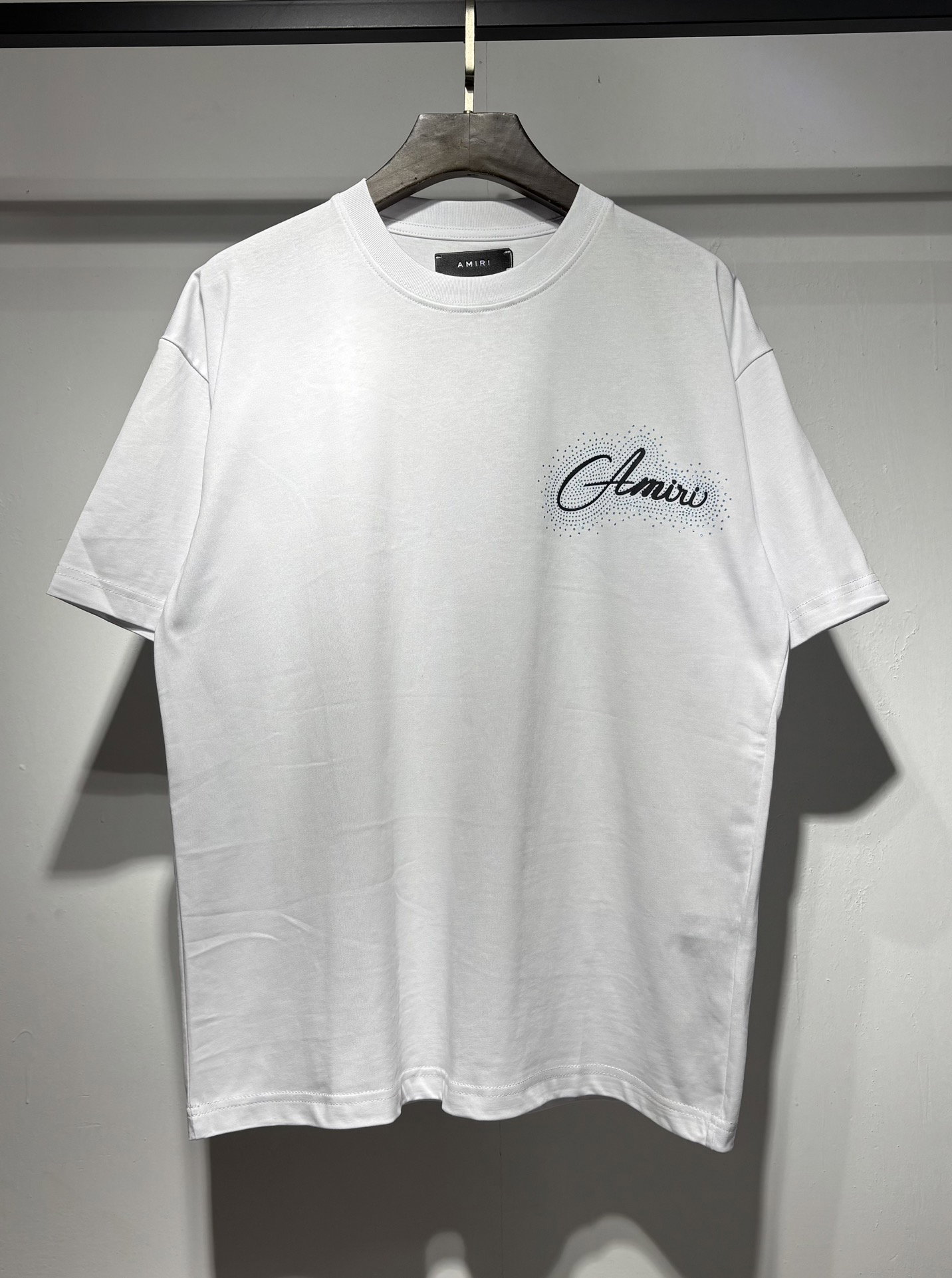 AMIRI rhinestone Letter pattern logo loose Round neck T-shirt White アミリ ラインストーン モジ パターン logo ゆったり クルーネック Tシャツ ホワイト