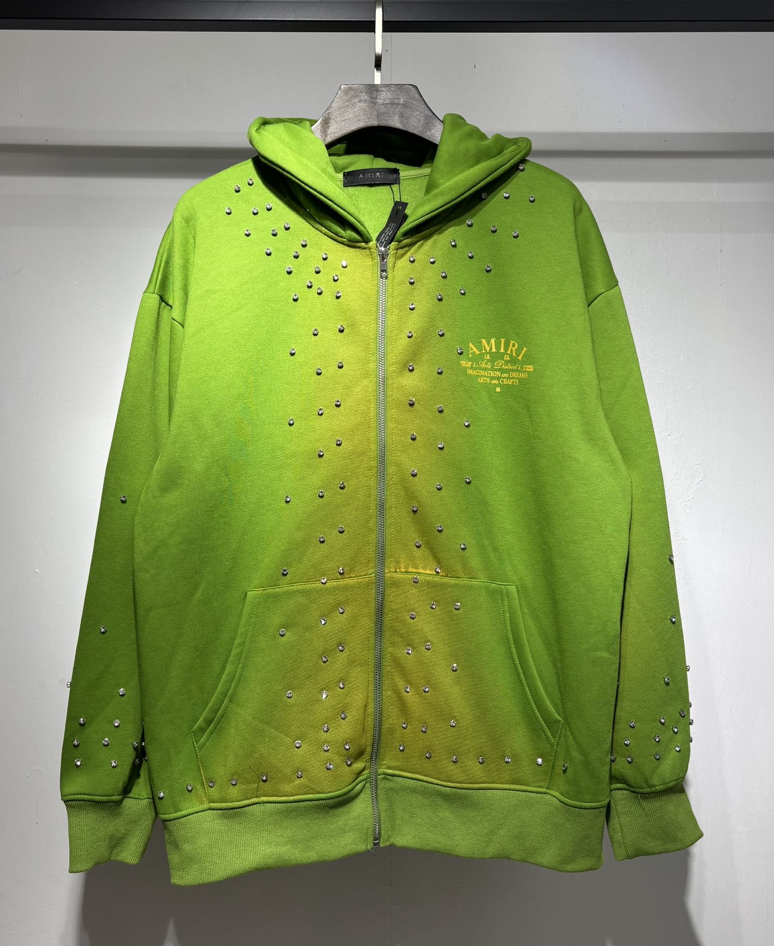 AMIRI rhinestone Print Letter LOGO loose ZIP-UP HOODIE Green アミリ ラインストーン プリント モジ LOGO ゆったり ジップアップパーカー グリーン