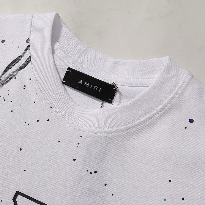 AMIRI splashed ink Print Letter pattern loose Round neck T-shirt White アミリ はつぼく プリント モジ パターン ゆったり クルーネック Tシャツ ホワイト