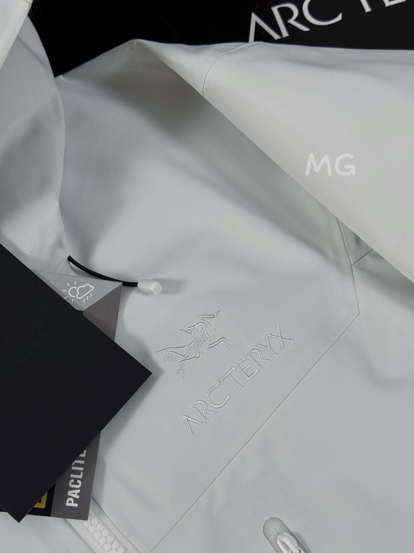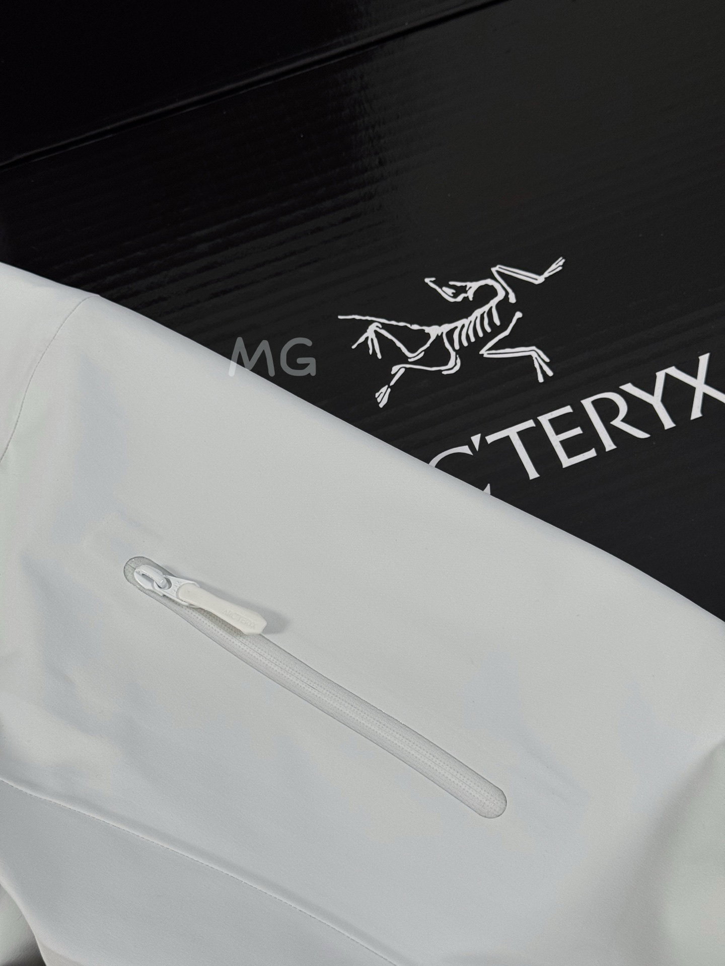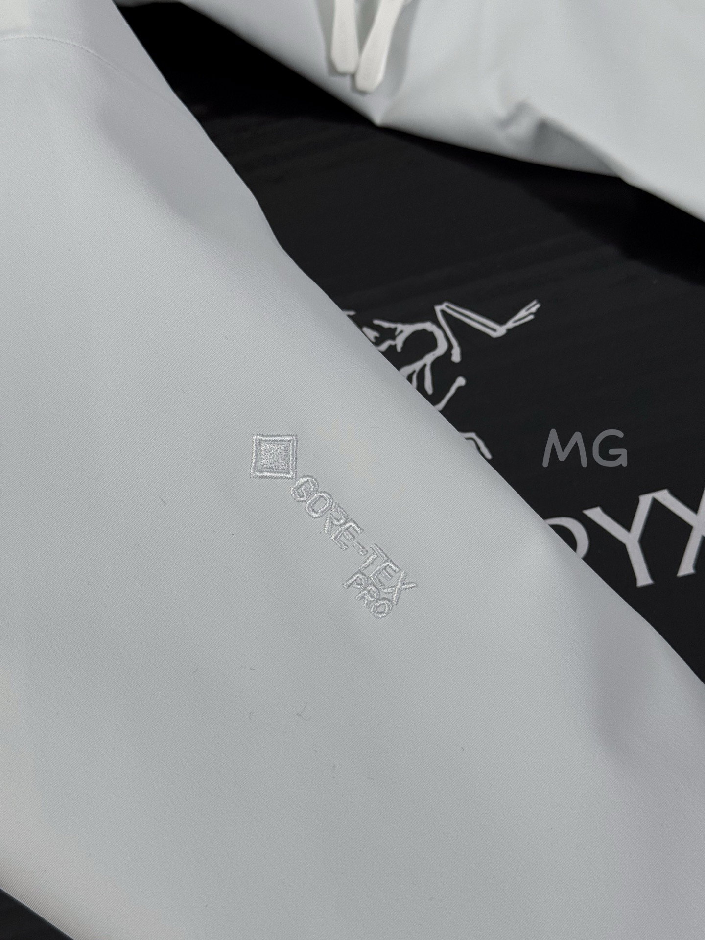 ARC’TERYX Alpha GORE-TEX Pro Embroidery LOGO loose ZIP-UP Windproof Rain Jacket White アークテリクス アルファ ゴアテックス プロ 刺繍 LOGO ゆったり ジップアップ 防风アウトドアジャケット ホワイト