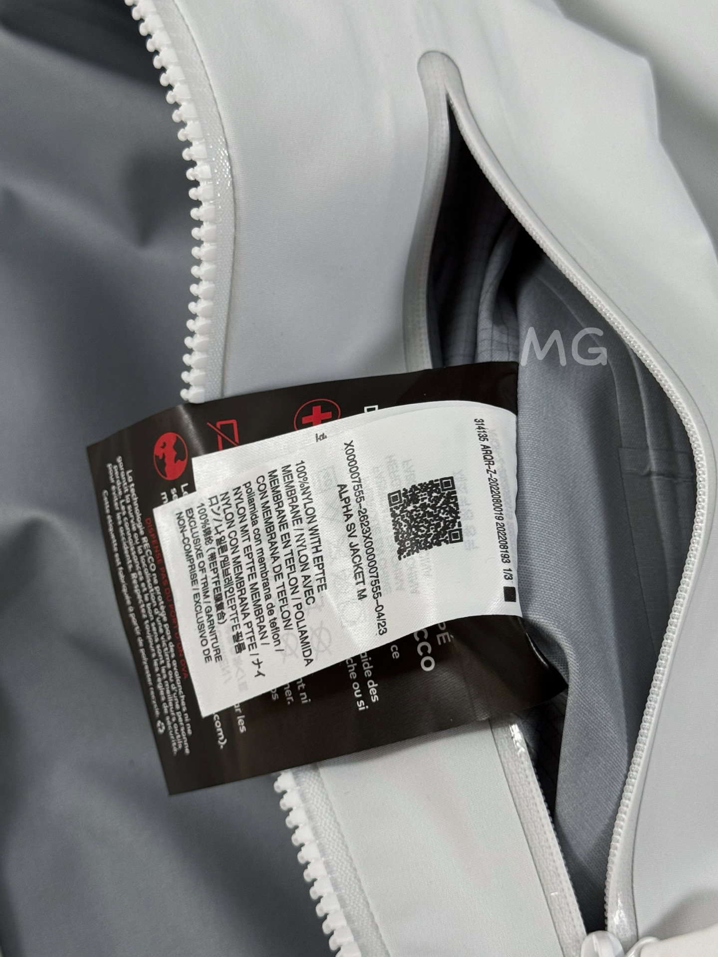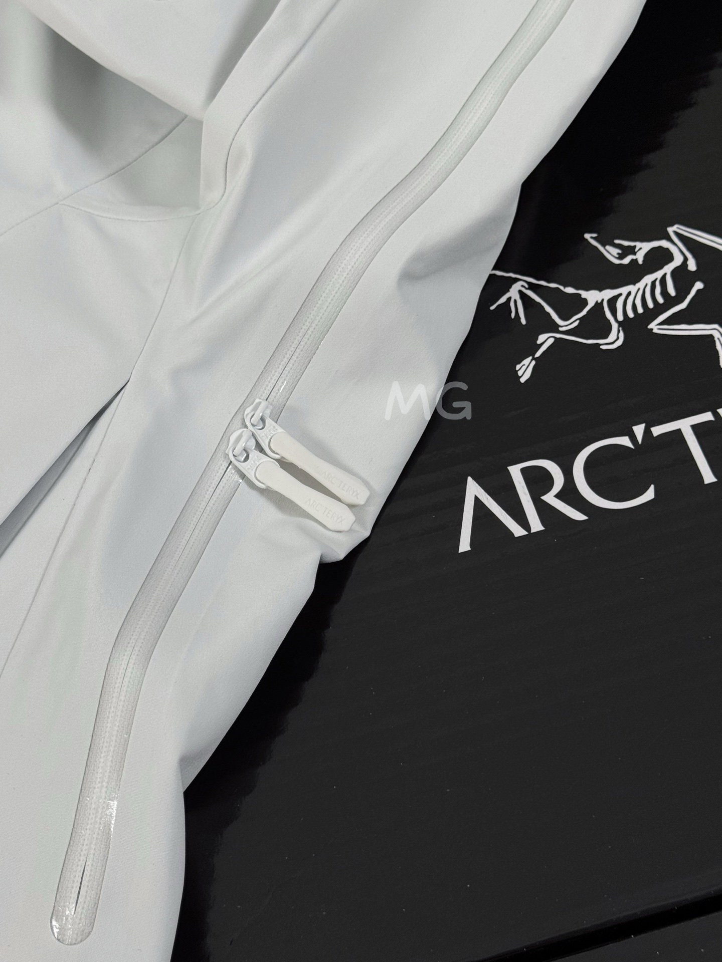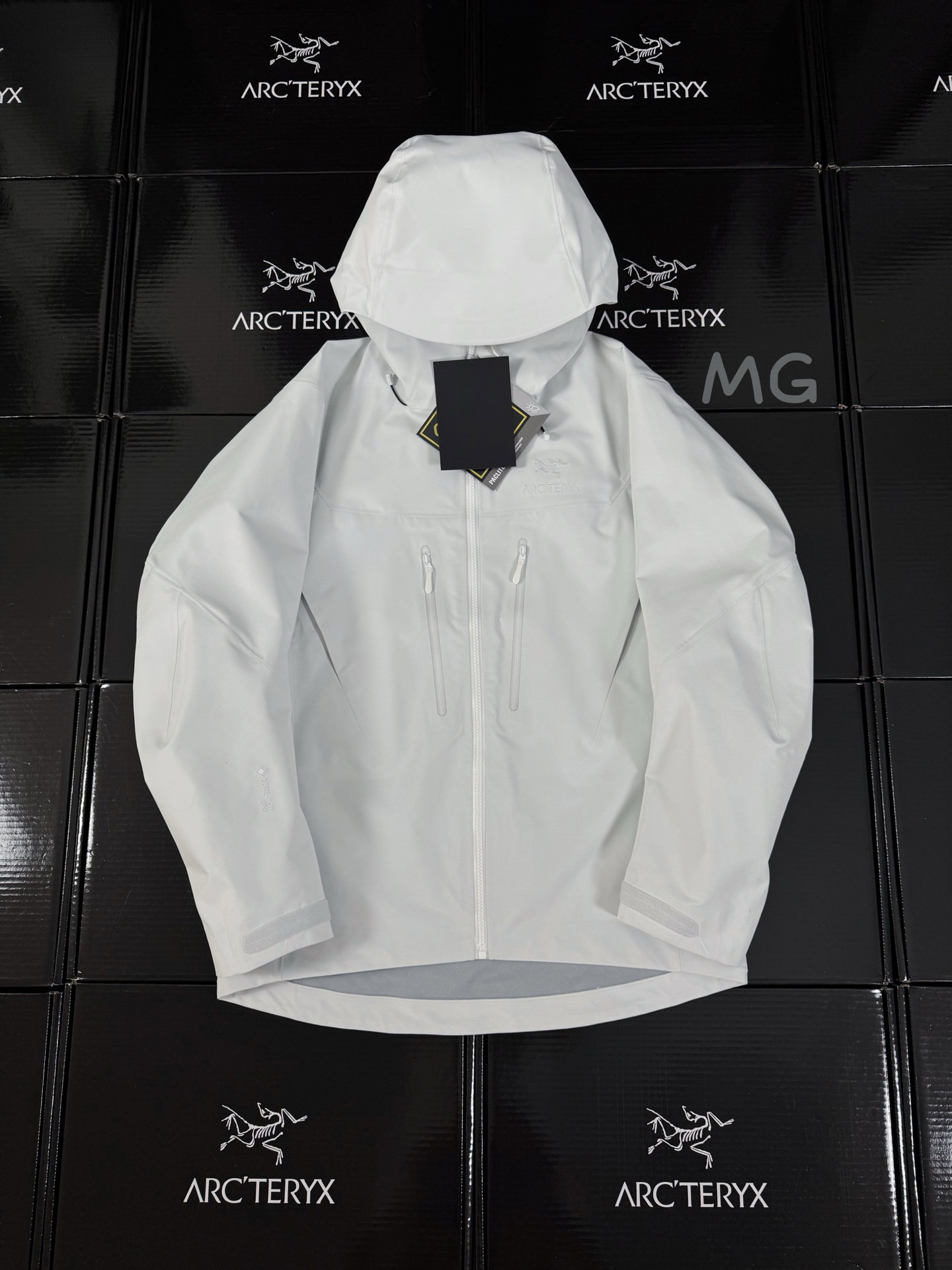 ARC’TERYX Alpha GORE-TEX Pro Embroidery LOGO loose ZIP-UP Windproof Rain Jacket White アークテリクス アルファ ゴアテックス プロ 刺繍 LOGO ゆったり ジップアップ 防风アウトドアジャケット ホワイト
