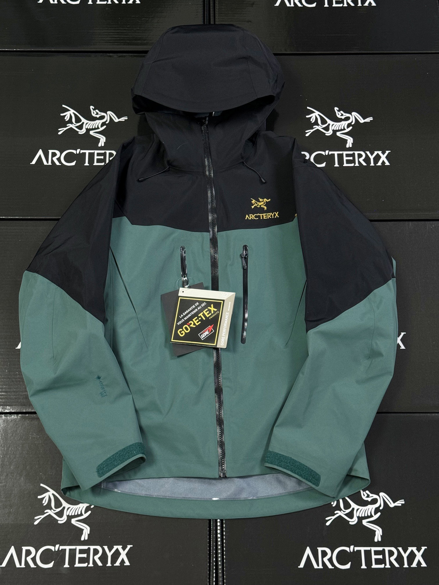 ARC’TERYX Alpha GORE-TEX Pro Patchwork Embroidery LOGO loose ZIP-UP Windproof Rain Jacket アークテリクス アルファ ゴアテックス プロ パッチワーク 刺繍 LOGO ゆったり ジップアップ 防风アウトドアジャケット