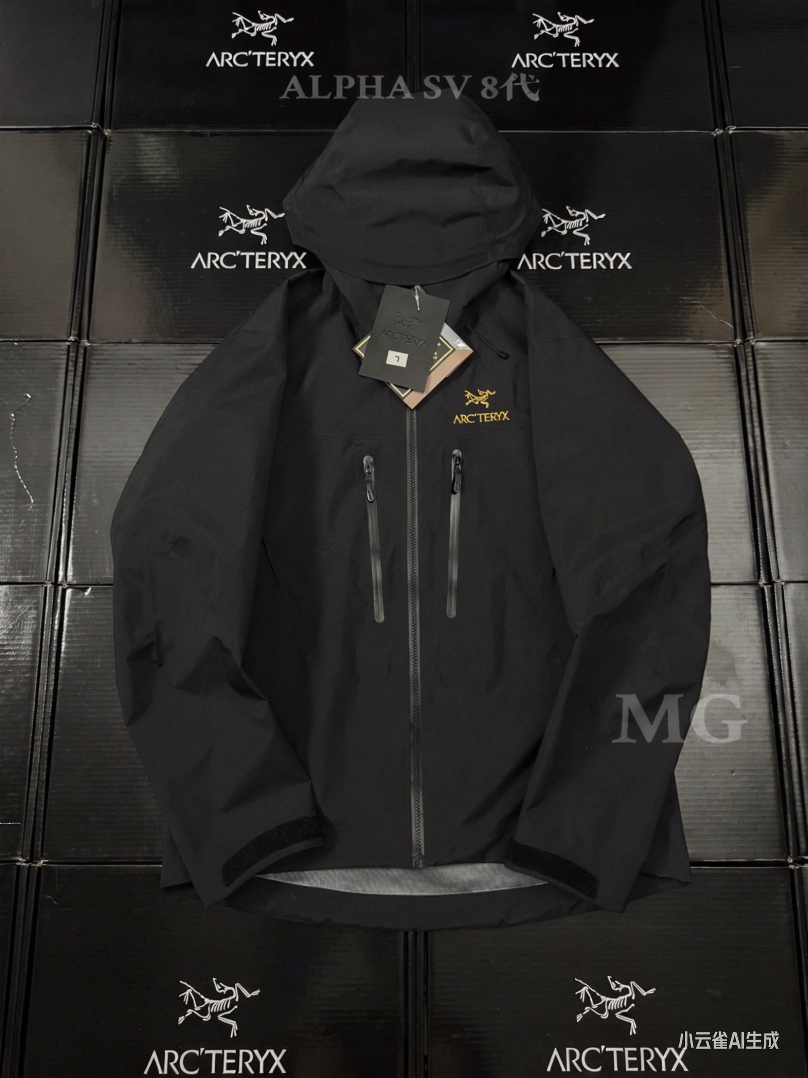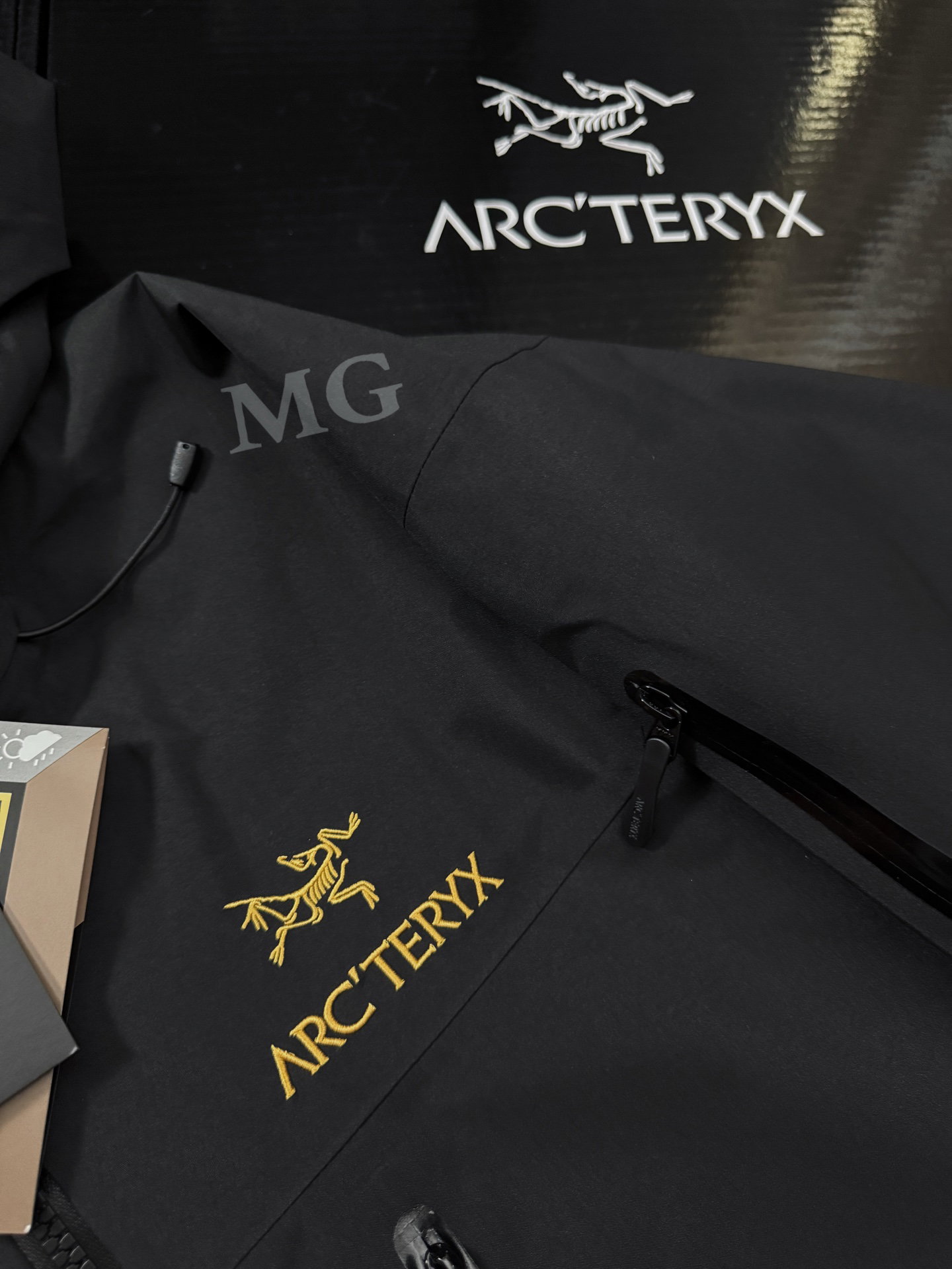 ARC’TERYX ALPHA SV Embroidery LOGO loose ZIP-UP Windproof Rain Jacket Black アークテリクス アルファ SV 刺繍 LOGO ゆったり ジップアップ 防风アウトドアジャケット ブラック