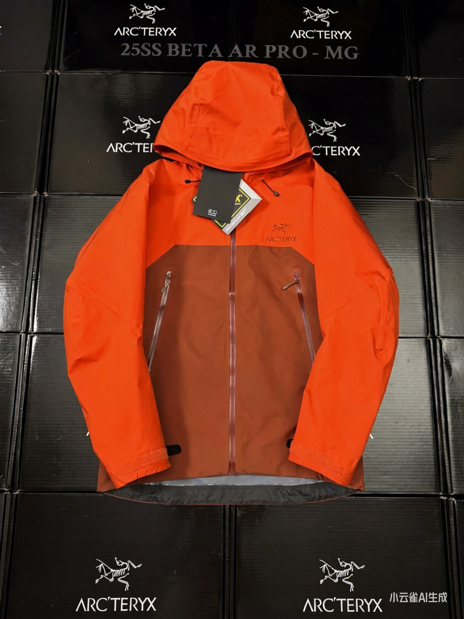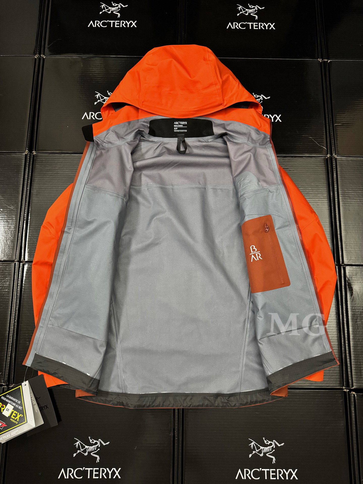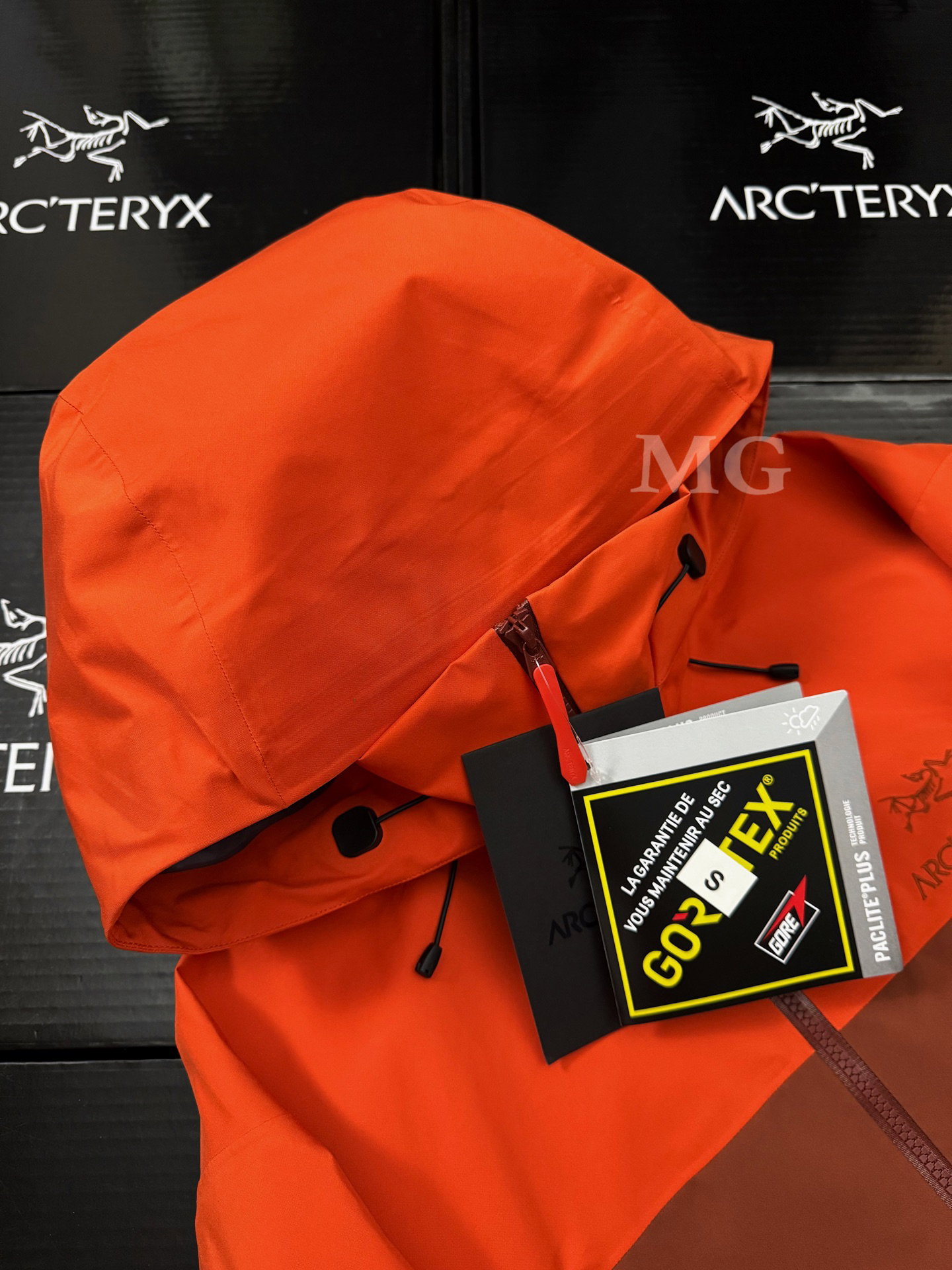 ARC’TERYX BETA AR GORE-TEX PRO Patchwork Embroidery LOGO loose ZIP-UP Windproof Rain Jacket orange アークテリクス ベータ エーアー ゴアテックス プロ パッチワーク 刺繍 LOGO ゆったり ジップアップ 防风アウトドアジャケット オレンジ色
