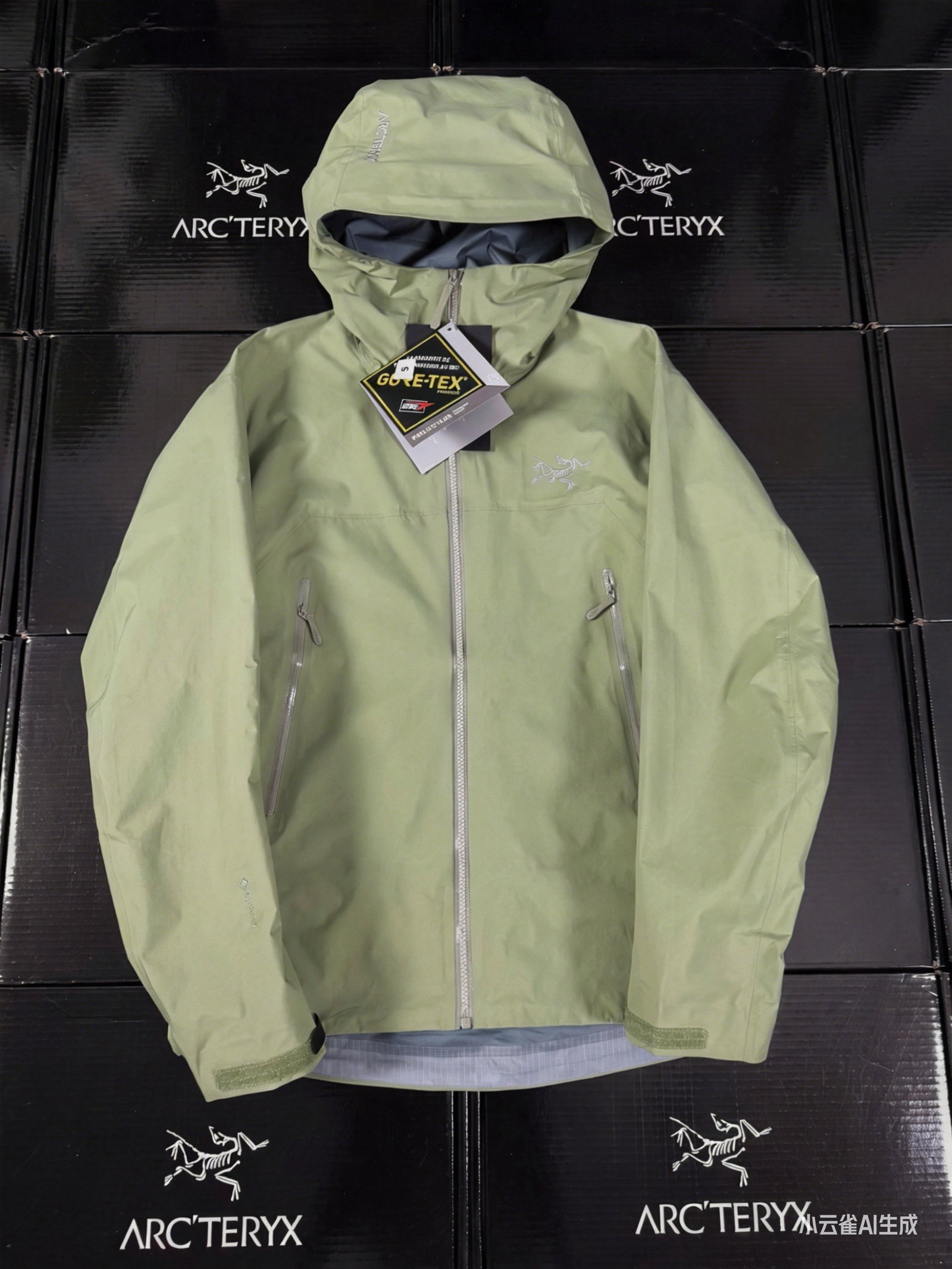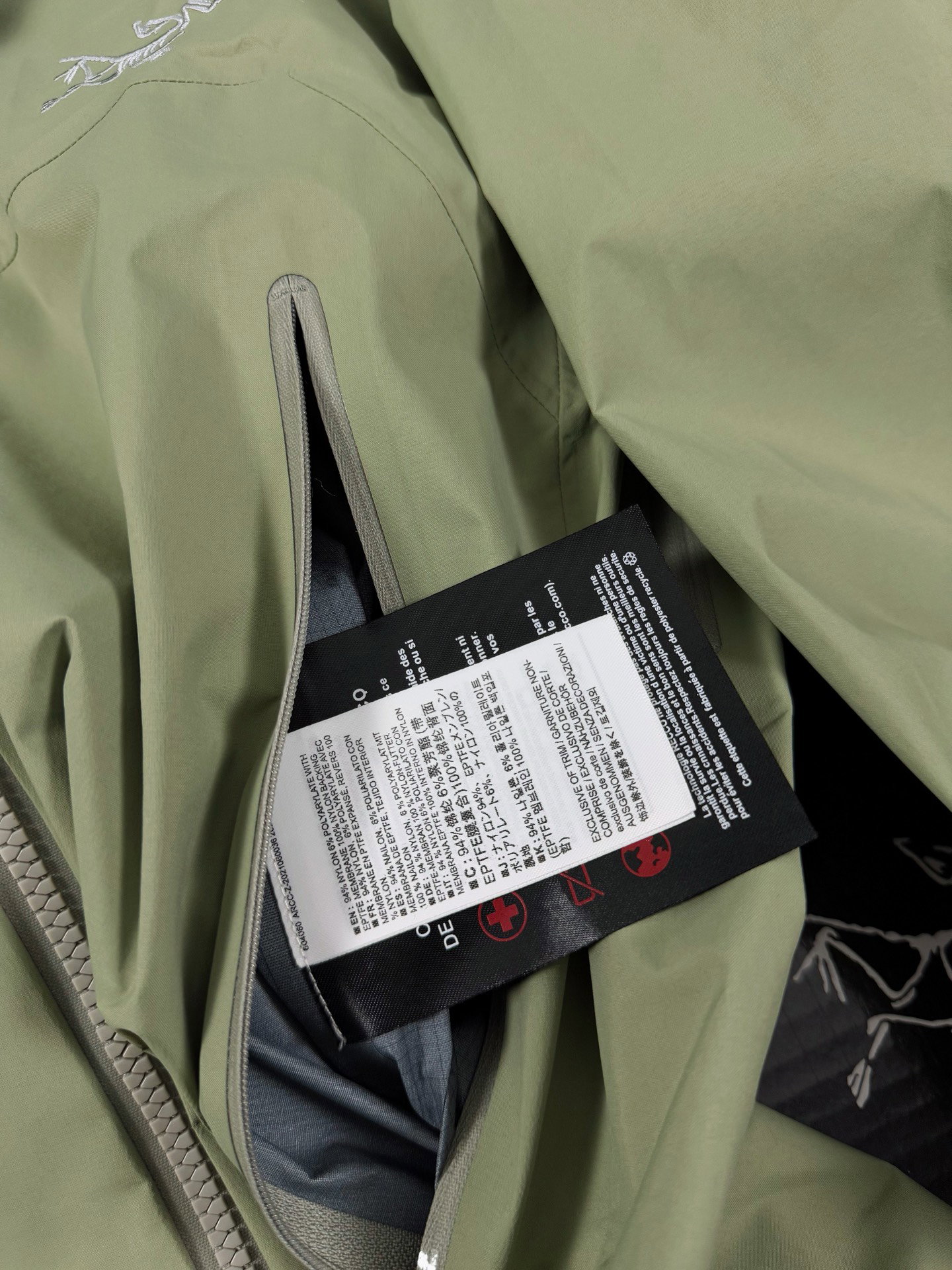 ARC’TERYX Beta Lightweight Embroidery LOGO ZIP-UP Windproof Rain Jacket Green アークテリクス ベータライト 刺繍 LOGO ジップアップ 防风アウトドアジャケット グリーン