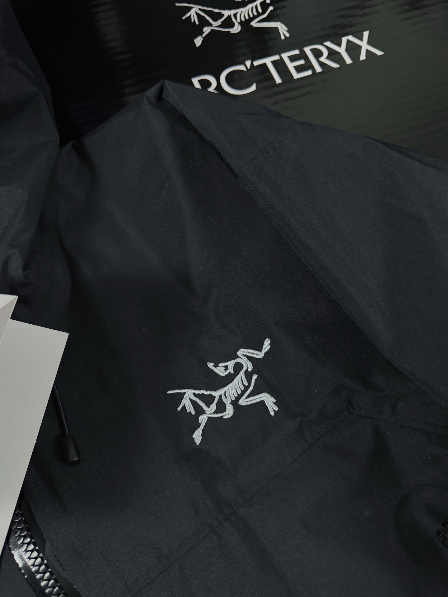 ARC’TERYX Beta Lightweight Embroidery LOGO ZIP-UP Windproof Rain Jacket Black アークテリクス ベータライト 刺繍 LOGO ジップアップ 防风アウトドアジャケット ブラック