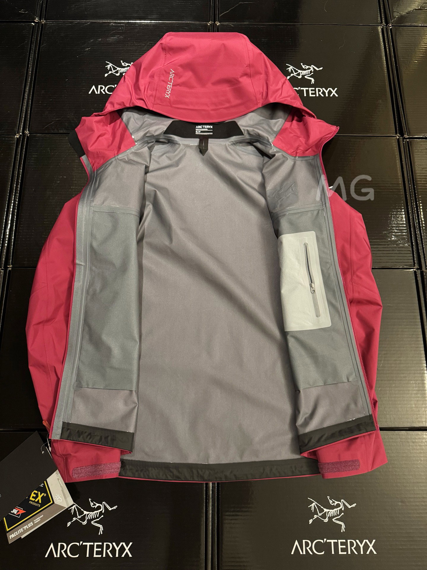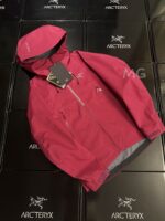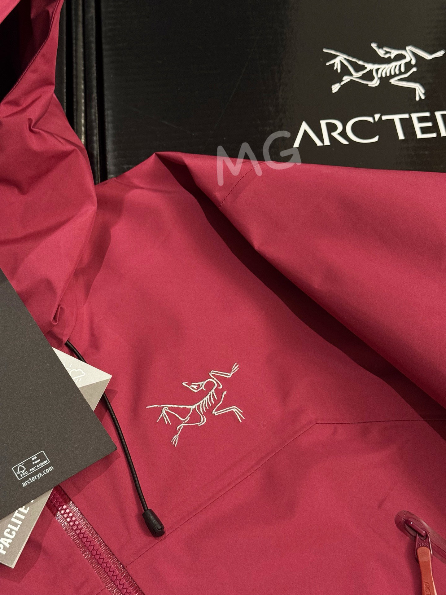 ARC’TERYX Beta Lightweight Embroidery LOGO ZIP-UP Windproof Rain Jacket rose red アークテリクス ベータライト 刺繍 LOGO ジップアップ 防风アウトドアジャケット ローズレッド