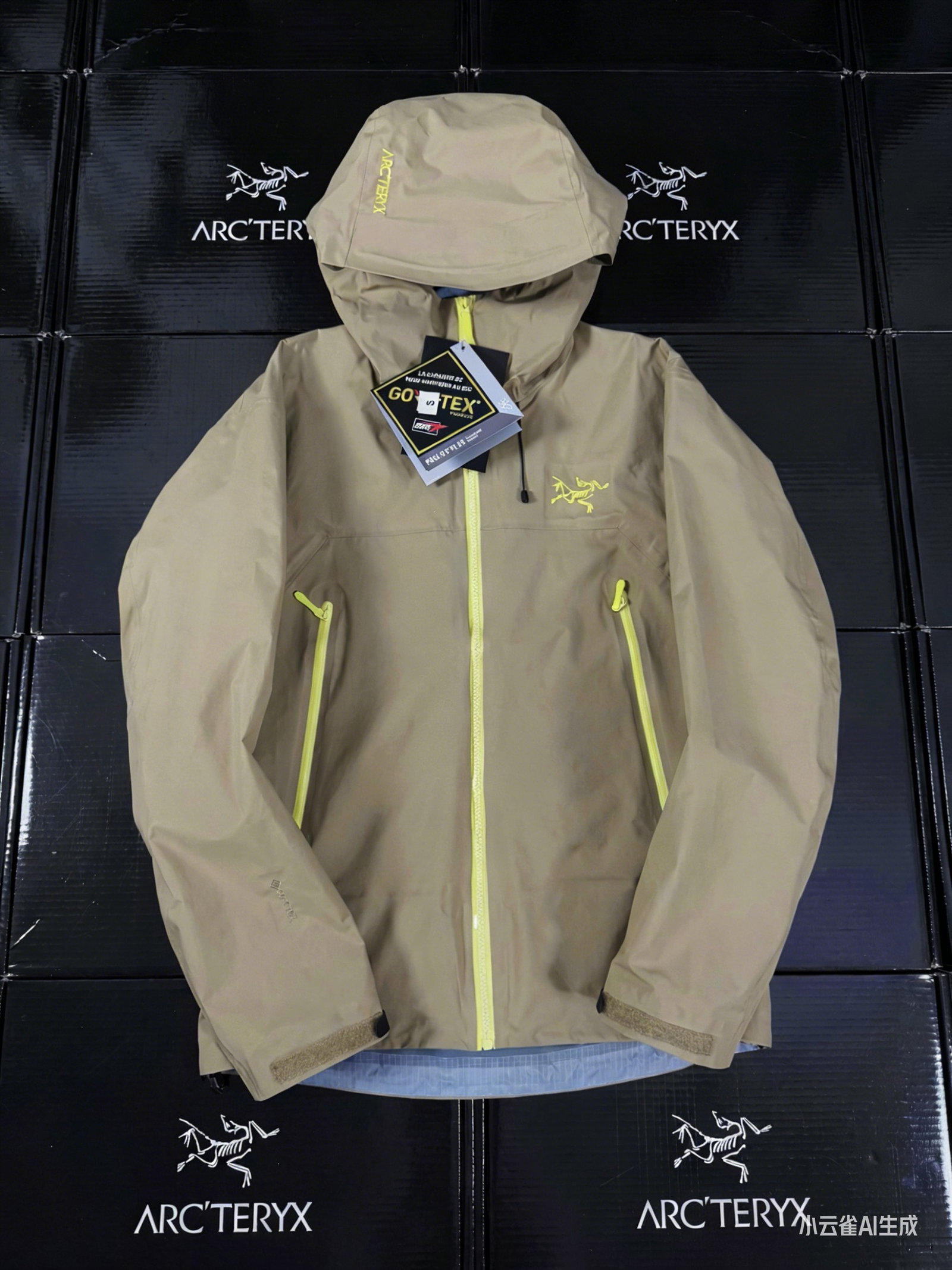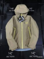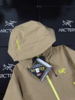 ARC’TERYX Beta Lightweight Embroidery Yellow LOGO ZIP-UP Windproof Rain Jacket Brown アークテリクス ベータライト 刺繍 イエロー LOGO ジップアップ 防风アウトドアジャケット ブラウン