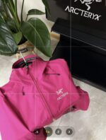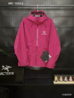 ARC’TERYX TERYX BETA LT Embroidery LOGO Patchwork ZIP-UP Windproof Rain Jacket rose red アークテリクス テリクス ベータ LT 刺繍 LOGO パッチワーク ジップアップ 防风アウトドアジャケット ローズレッド