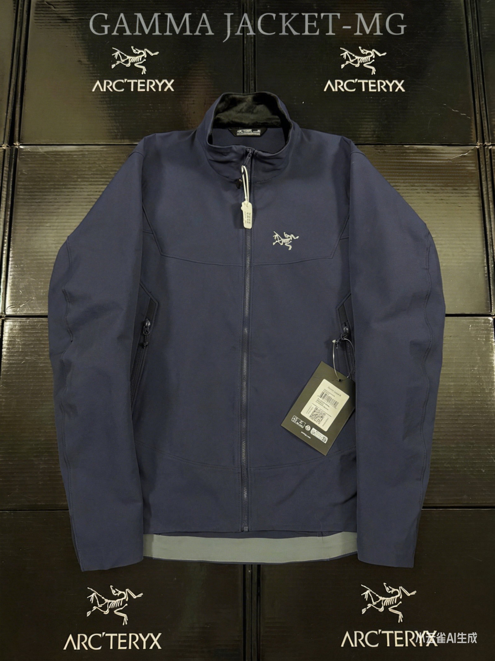 ARC’TERYX GAMMA Embroidery LOGO loose ZIP-UP Windproof Rain Jacket Navy アークテリクス ガンマ 刺繍 LOGO ゆったり ジップアップ 防风アウトドアジャケット ネイビー