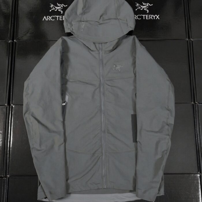ARC’TERYX gamma Hoody Embroidery LOGO loose ZIP-UP Windproof Rain nylon jacket dark gray アークテリクス ガンマ フーディ 刺繍 LOGO ゆったり ジップアップ 防风アウトドア ナイロンジャケット ダークグレー
