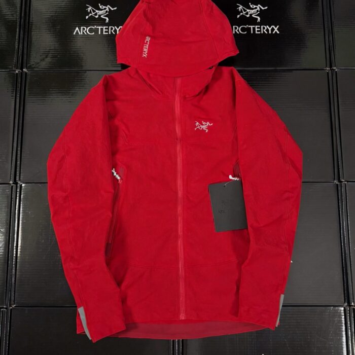ARC’TERYX gamma Hoody Embroidery LOGO loose ZIP-UP Windproof Rain nylon jacket Red アークテリクス ガンマ フーディ 刺繍 LOGO ゆったり ジップアップ 防风アウトドア ナイロンジャケット レッド