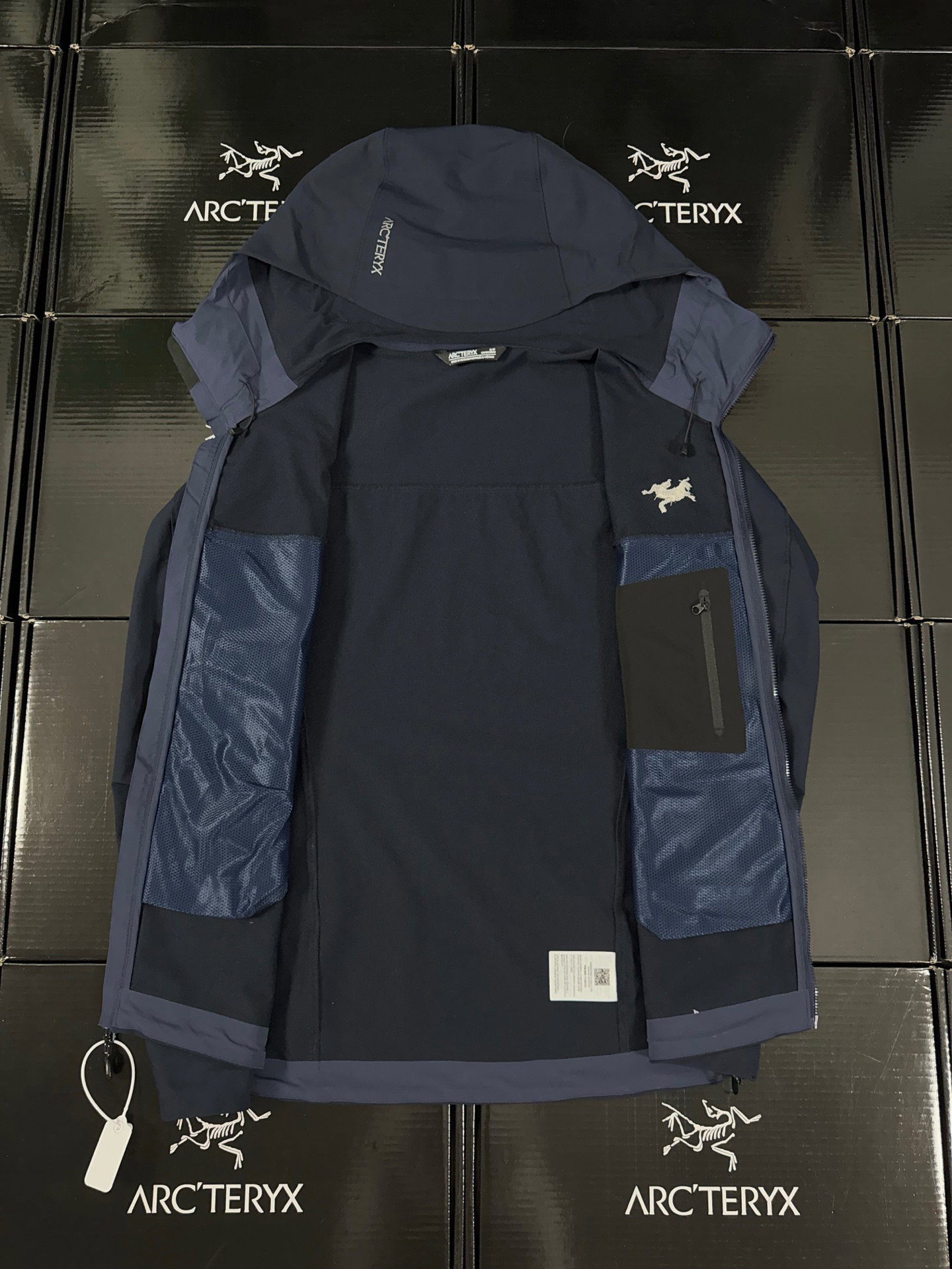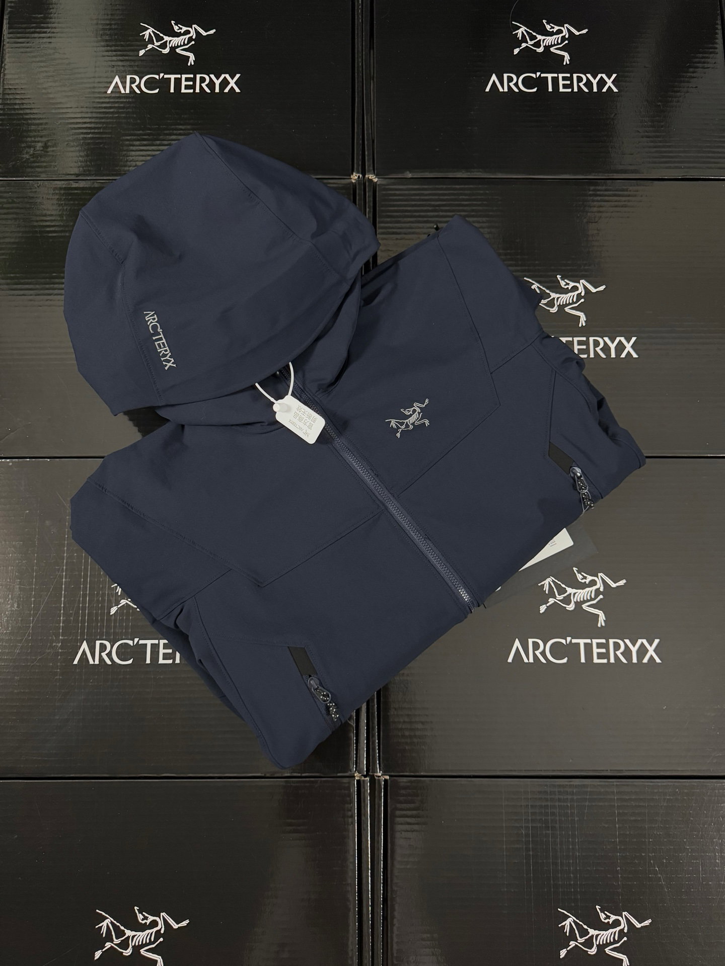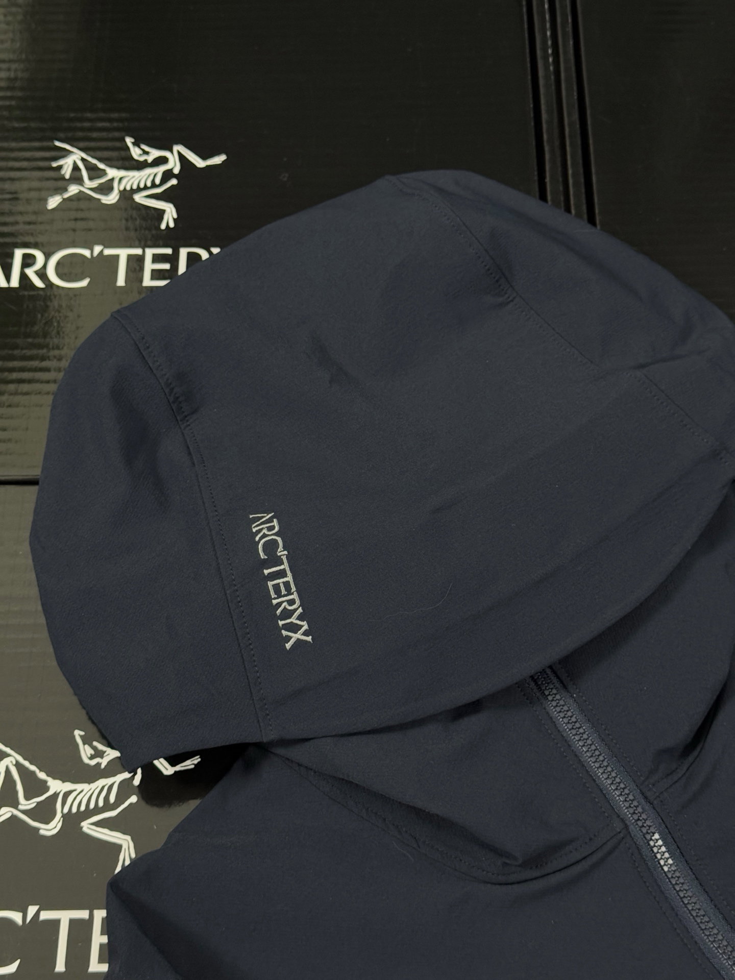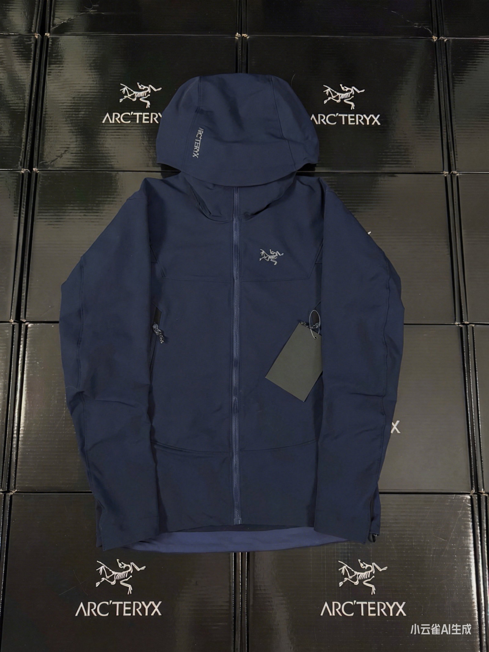 ARC’TERYX gamma Hoody Embroidery LOGO loose ZIP-UP Windproof Rain nylon Jacket Navy アークテリクス ガンマ フーディ 刺繍 LOGO ゆったり ジップアップ 防风アウトドア ナイロンジャケット ネイビー