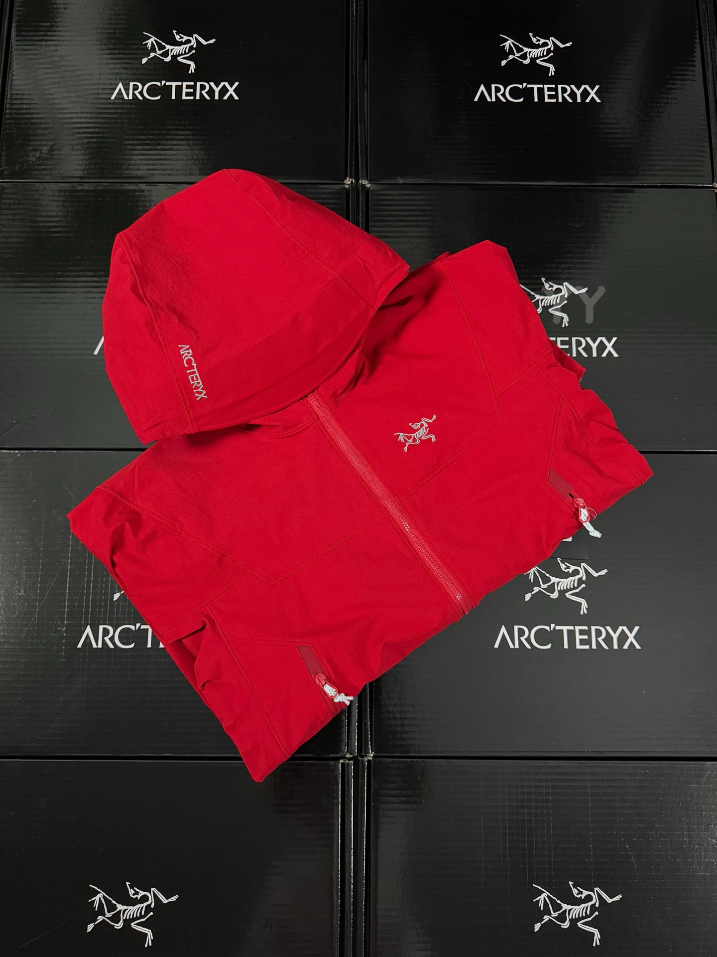 ARC’TERYX gamma Hoody Embroidery LOGO loose ZIP-UP Windproof Rain nylon jacket Red アークテリクス ガンマ フーディ 刺繍 LOGO ゆったり ジップアップ 防风アウトドア ナイロンジャケット レッド