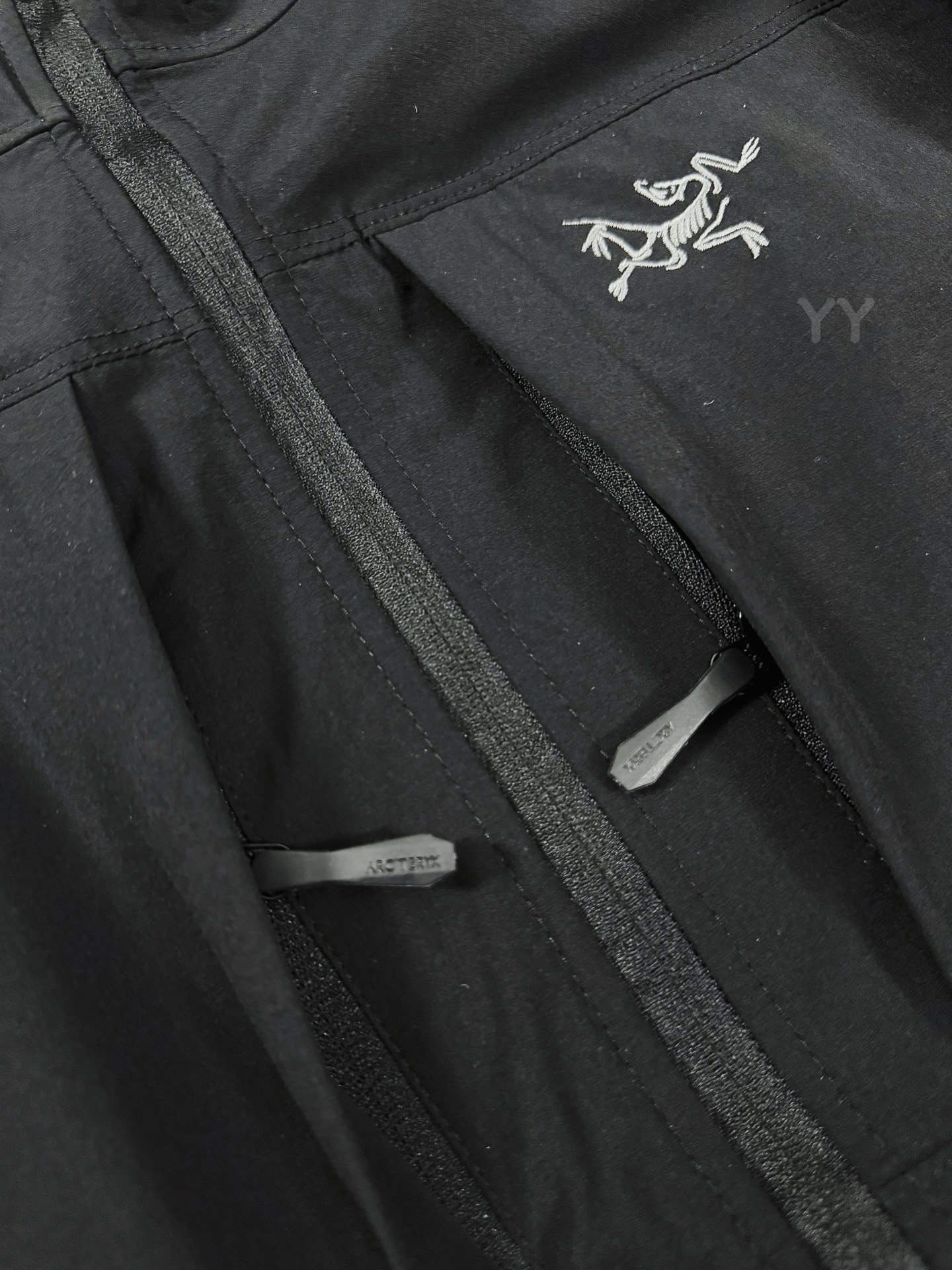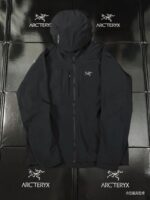 ARC’TERYX gamma Lightweight Hoody Embroidery LOGO loose ZIP-UP Windproof Rain jacket Black アークテリクス ガンマ ライトウェイト フーディ 刺繍 LOGO ゆったり ジップアップ 防风アウトドア ジャケット ブラック