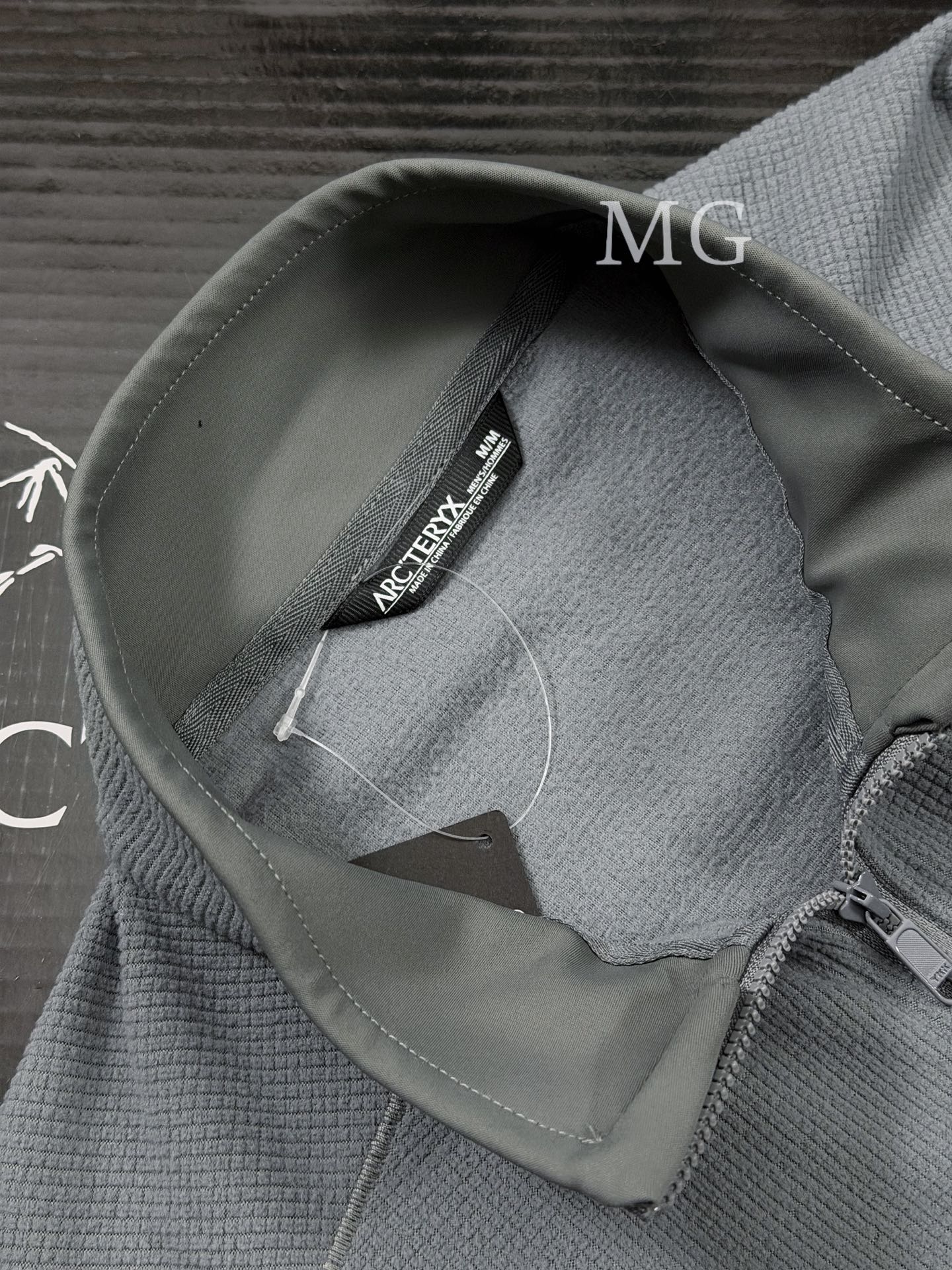 ARC’TERYX Olera Embroidery LOGO Waffle knit loose ZIP-UP jacket Gray アークテリクス オレラ 刺繍 LOGO ワッフル ゆったり ジップアップ ジャケット グレー