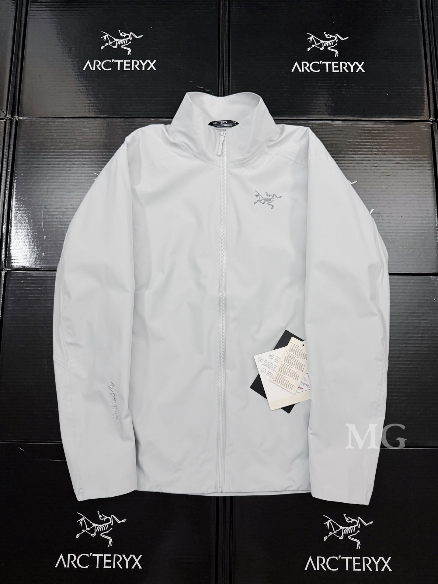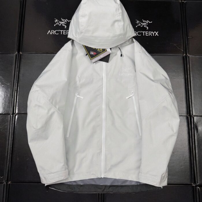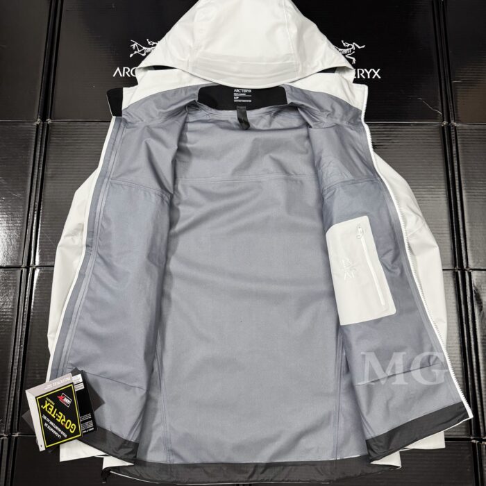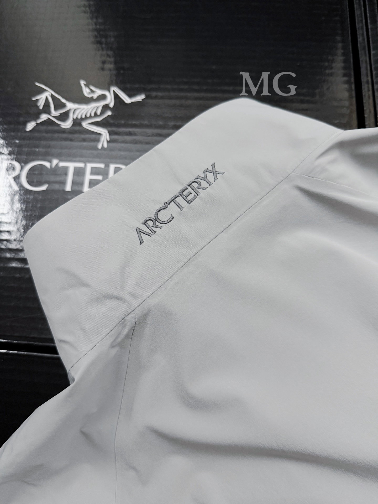ARC’TERYX BETA AR GORE-TEX PRO Patchwork Embroidery LOGO loose ZIP-UP Windproof Rain Jacket White アークテリクス ベータ エーアー ゴアテックス プロ パッチワーク 刺繍 LOGO ゆったり ジップアップ 防风アウトドアジャケット ホワイト
