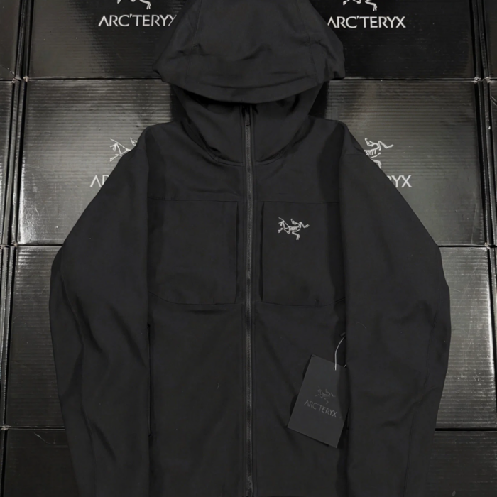 ARC’TERYX gamma Hoody Embroidery LOGO loose ZIP-UP Windproof Rain Jacket Black アークテリクス ガンマ フーディ 刺繍 LOGO ゆったり ジップアップ 防风アウトドアジャケット ブラック