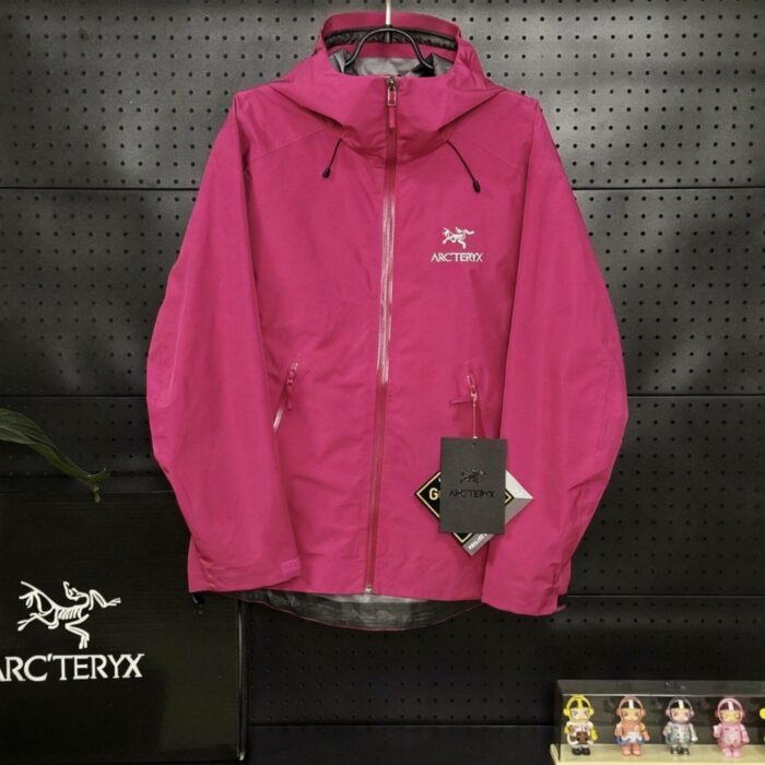 ARC’TERYX TERYX BETA LT Embroidery LOGO Patchwork ZIP-UP Windproof Rain Jacket rose red アークテリクス テリクス ベータ LT 刺繍 LOGO パッチワーク ジップアップ 防风アウトドアジャケット ローズレッド